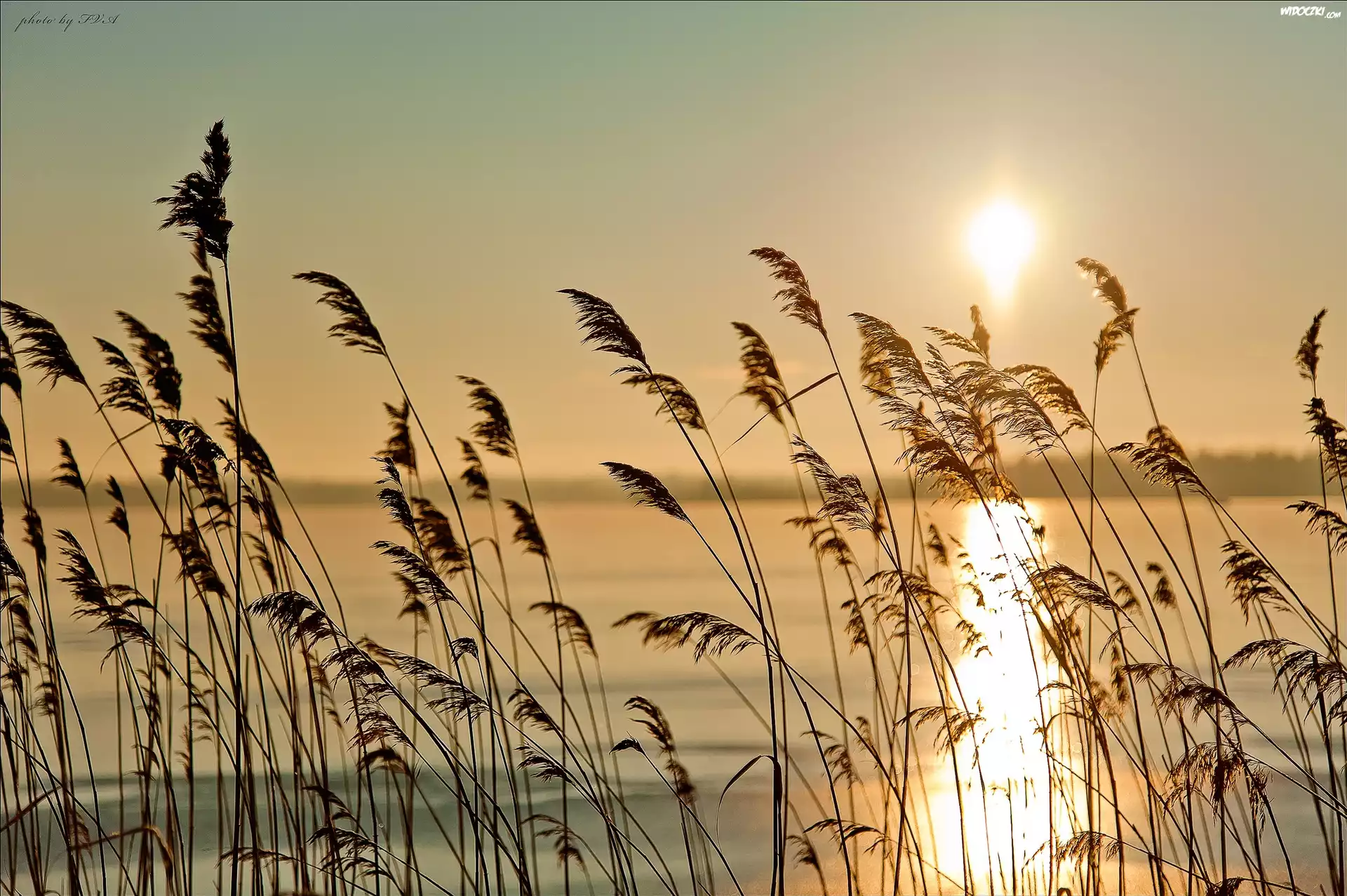 Zdjęcia, Jezioro, Trawa, Promienie, Słońca
