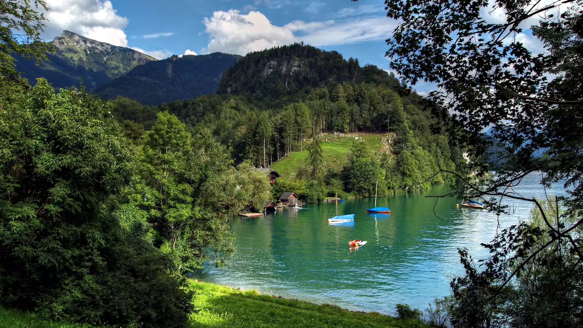Zdjęcia, Jezioro, Góry, Lasy, Przystań, Łódki