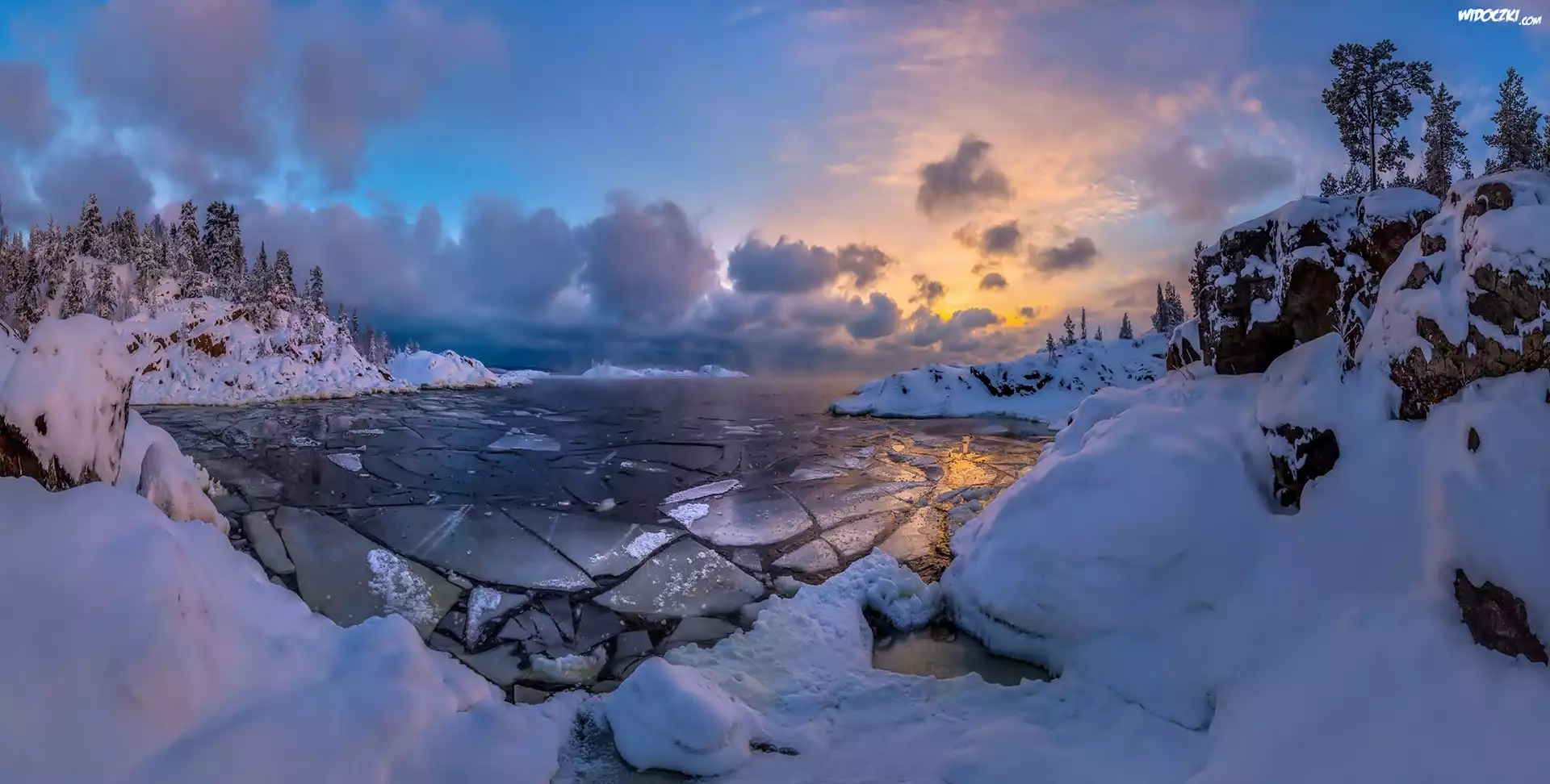 Rosja, Jezioro Ładoga, Zima, Lód, Wschód słońca