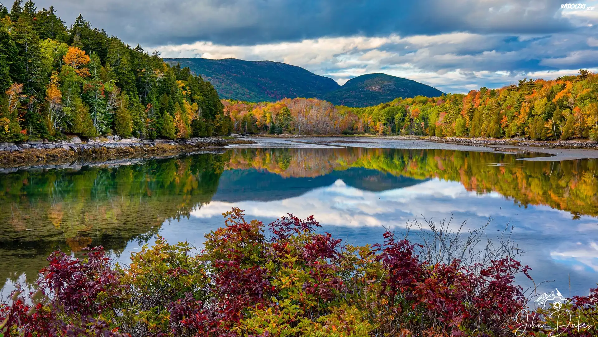 Stany Zjednoczone, Stan Maine, Park Narodowy Acadia, Jezioro, Jordan Pond, Lasy, Roślinność, Góry, Bubble Mountains |