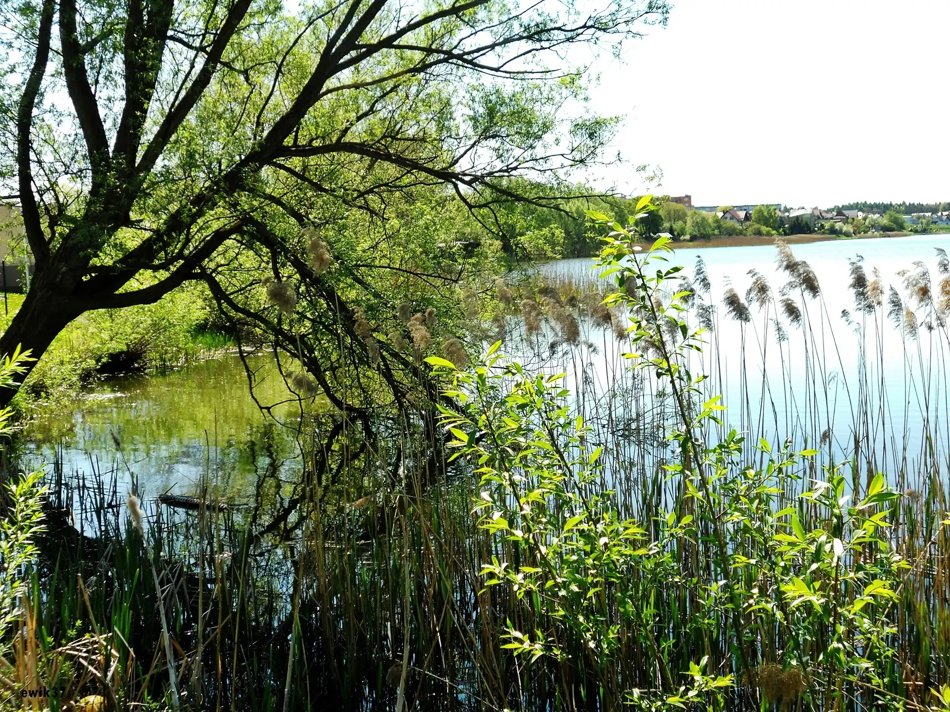 Zdjęcia, Jezioro, Powalone, Drzewo, Sitowie, Rośliny