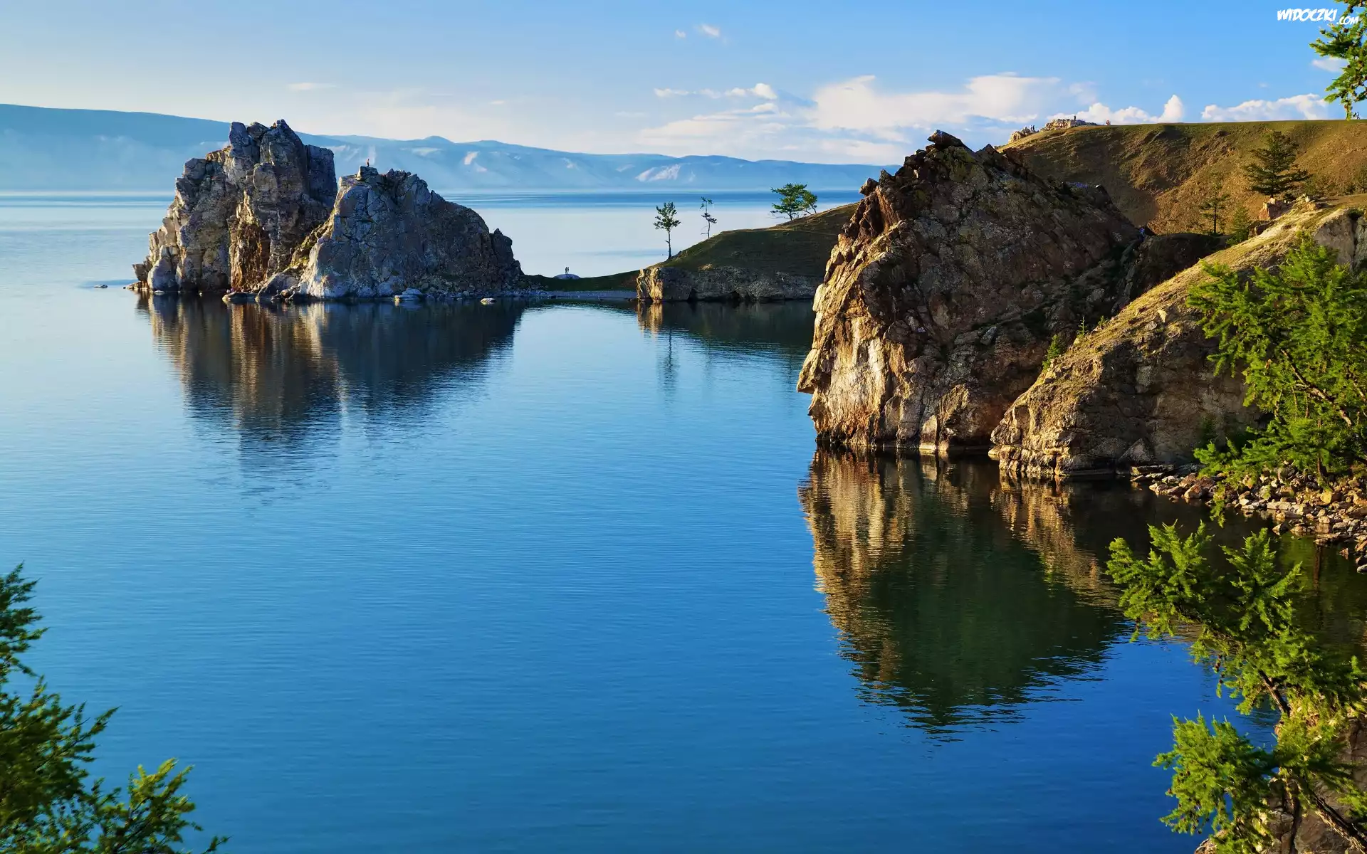 Zdjęcia, Jezioro Bajkał, Skały, Drzewa
