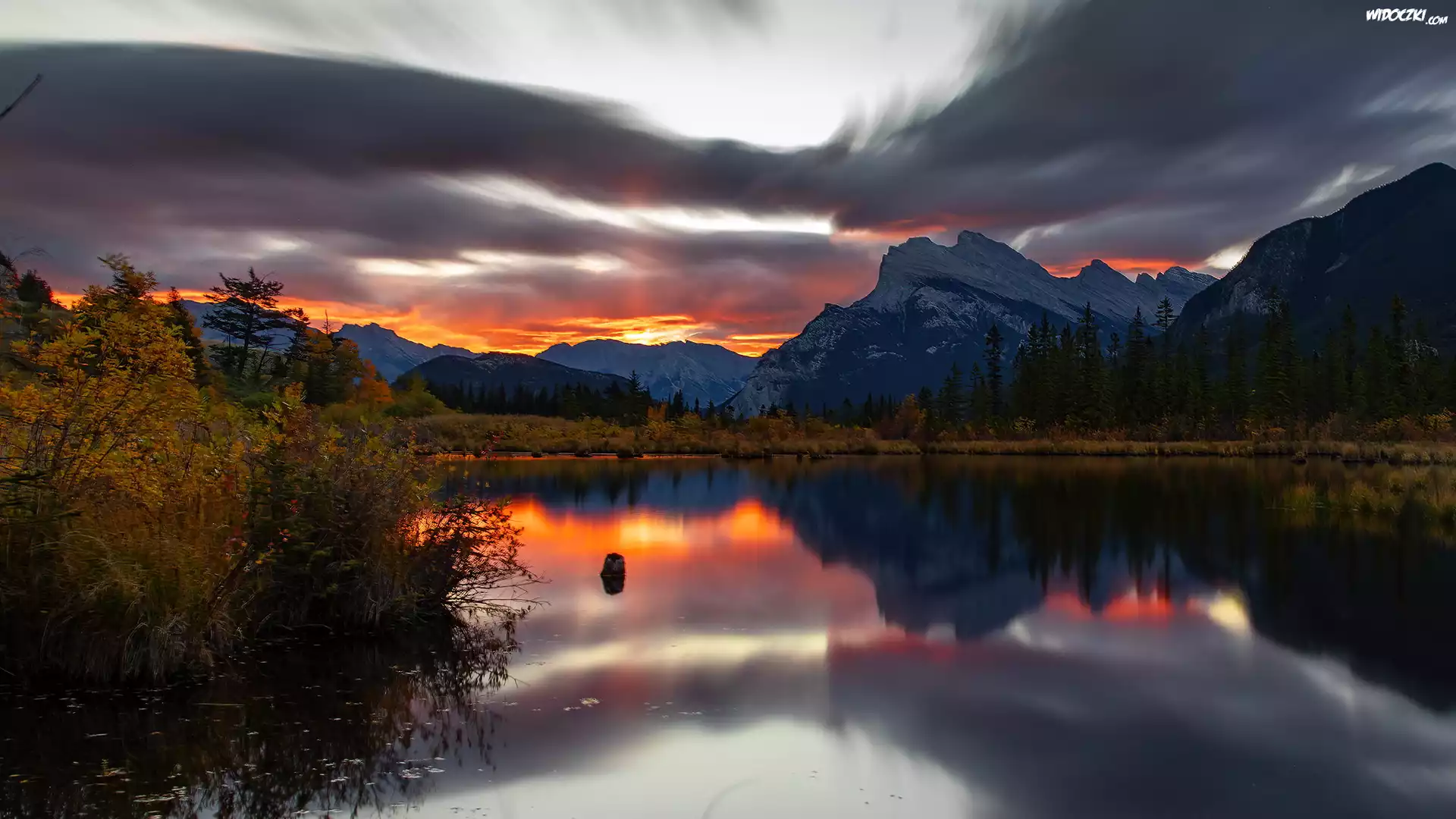 Jezioro, Vermilion Lake, Park Narodowy Banff, Góry, Wschód Słońca, Kanada