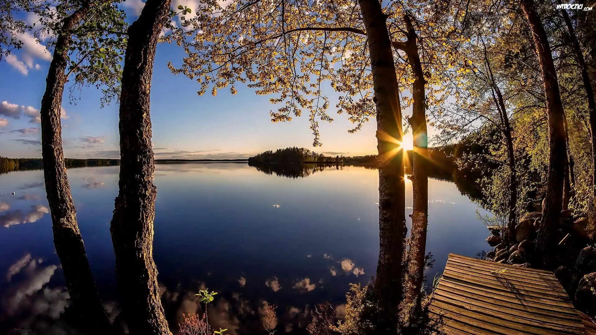 Zdjęcia, Jezioro, Promienie, Słońca, Drzewa