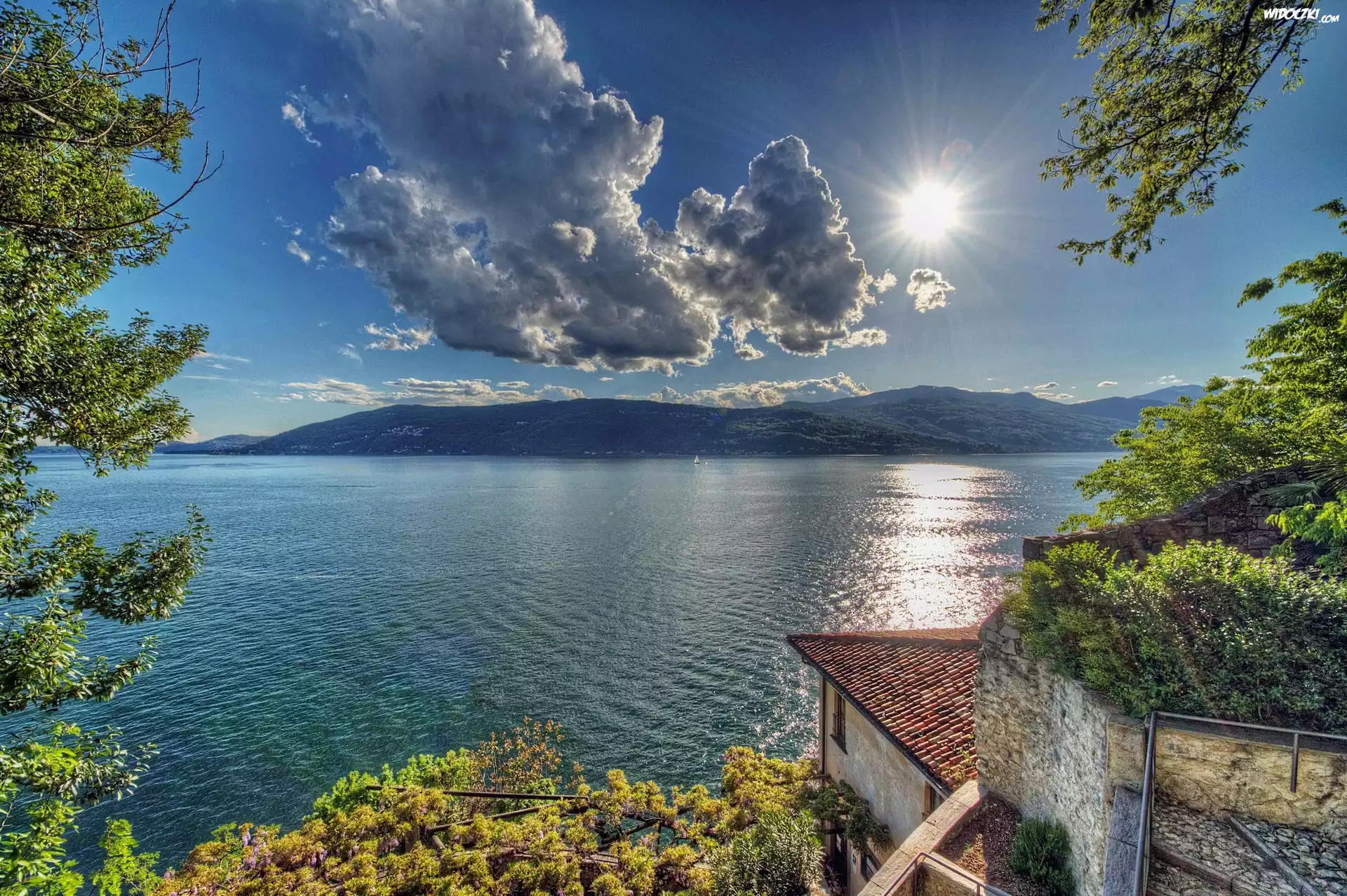 Zdjęcia, Jezioro Varese, Włochy, Promienie Słońca, Góry