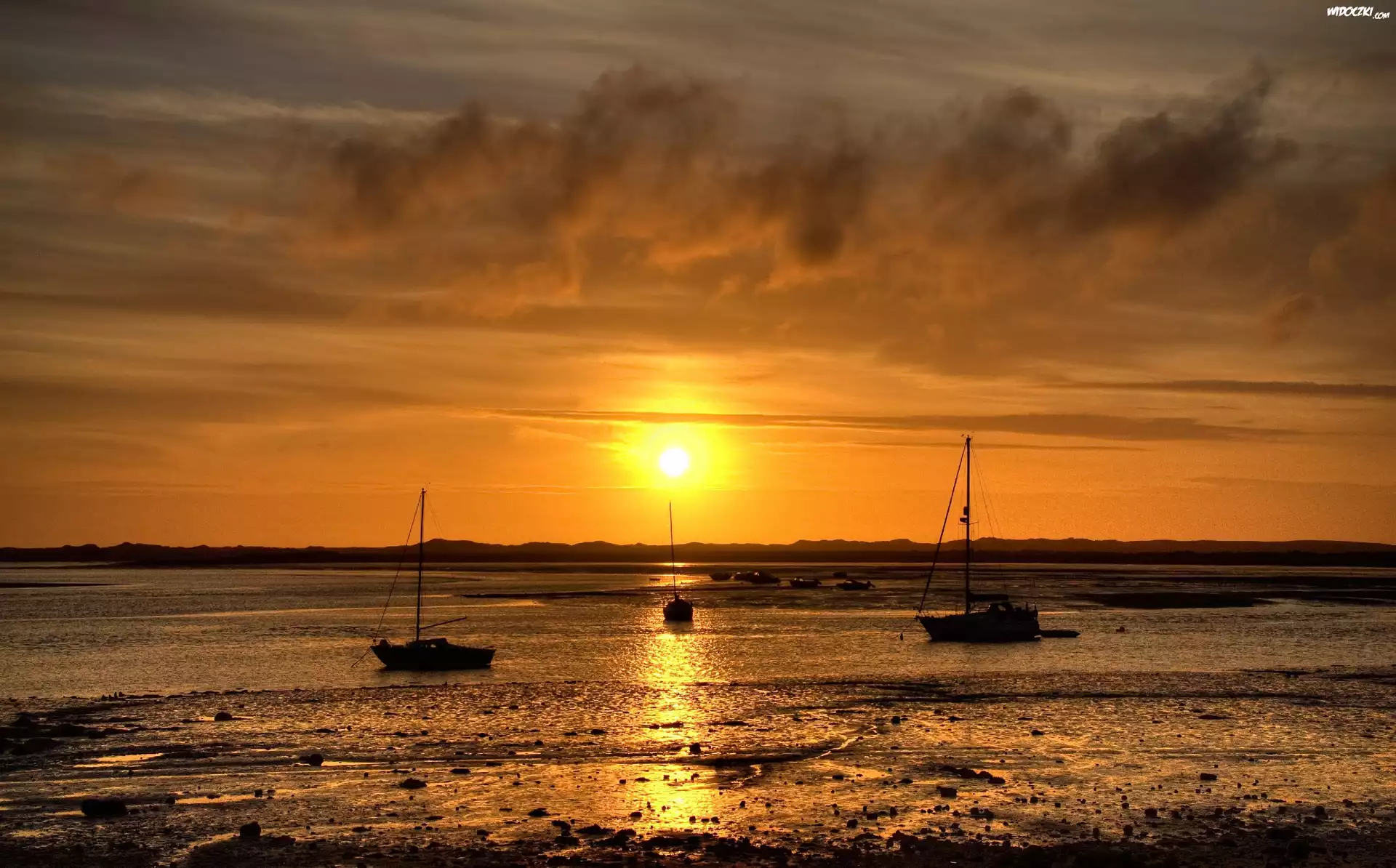 Zdjęcia, Jezioro, Zachód słońca, Żaglówki