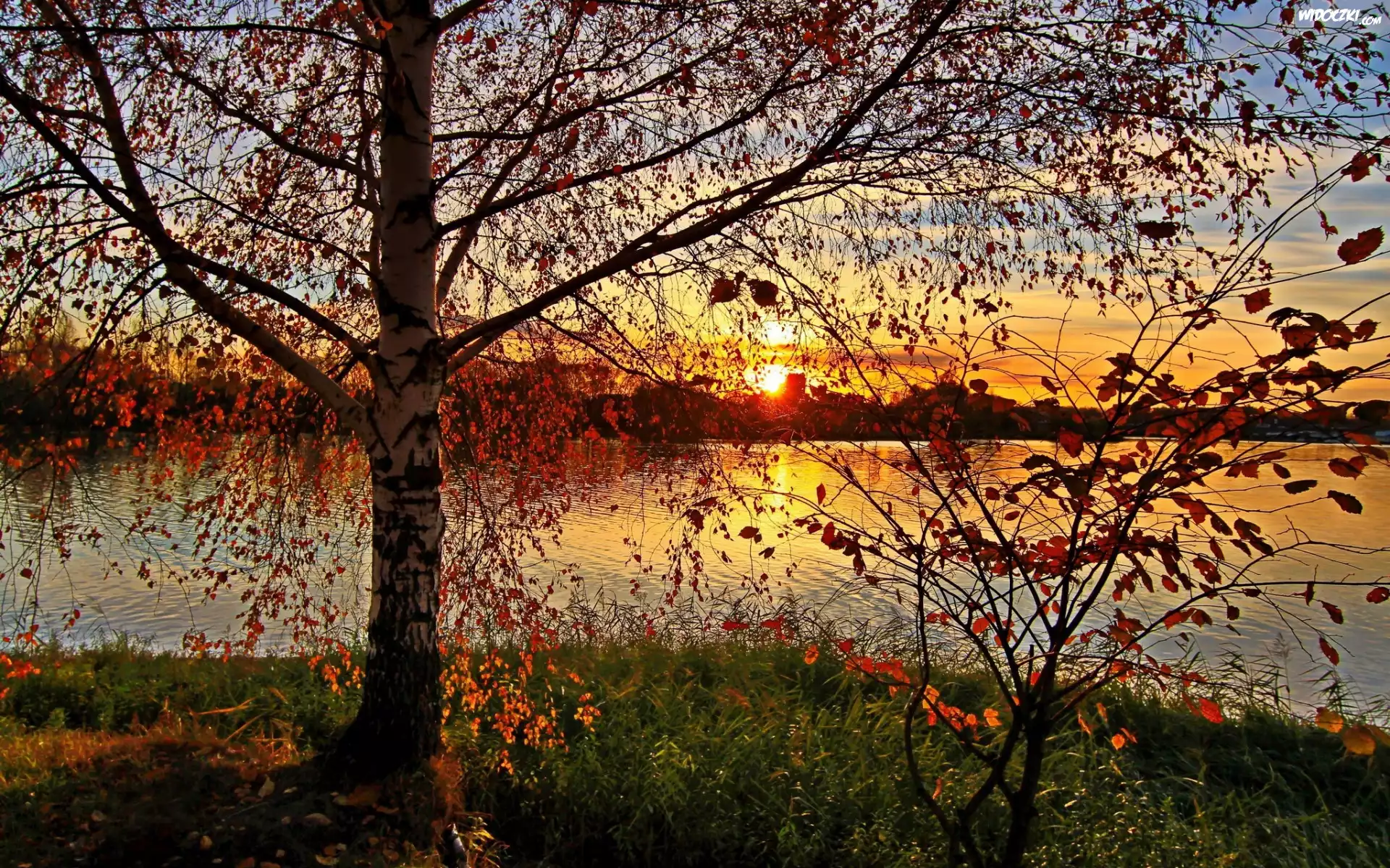 Zdjęcia, Jezioro, Chmury, Zachód, Słońca, Jesień