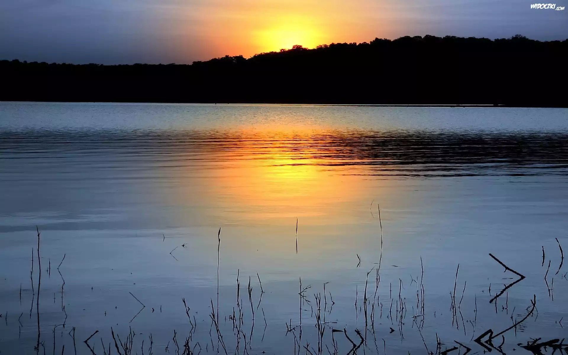 Zdjęcia, Jezioro, Zachód, Słońca, Las
