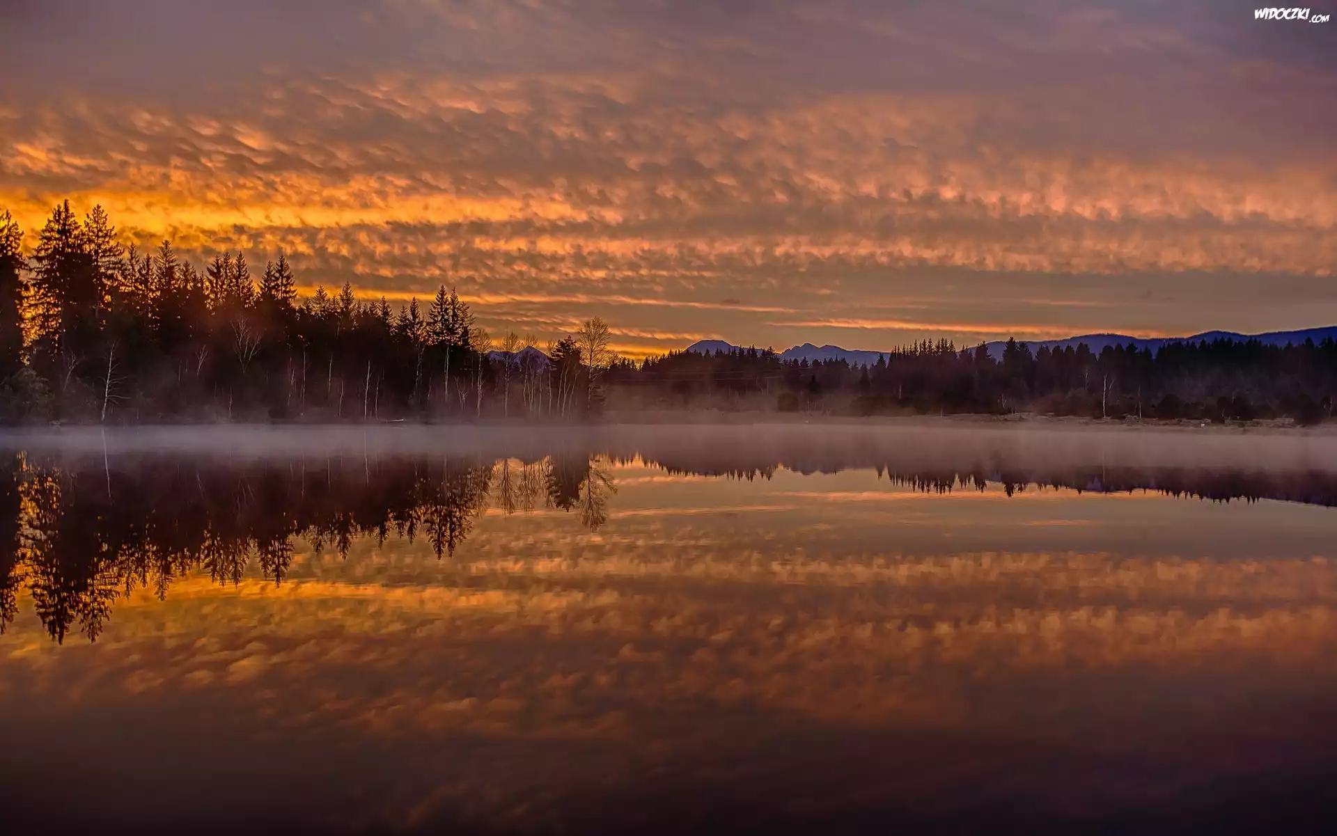 Zdjęcia, Jezioro, Lasy, Zachód, Słońca, Odbicie