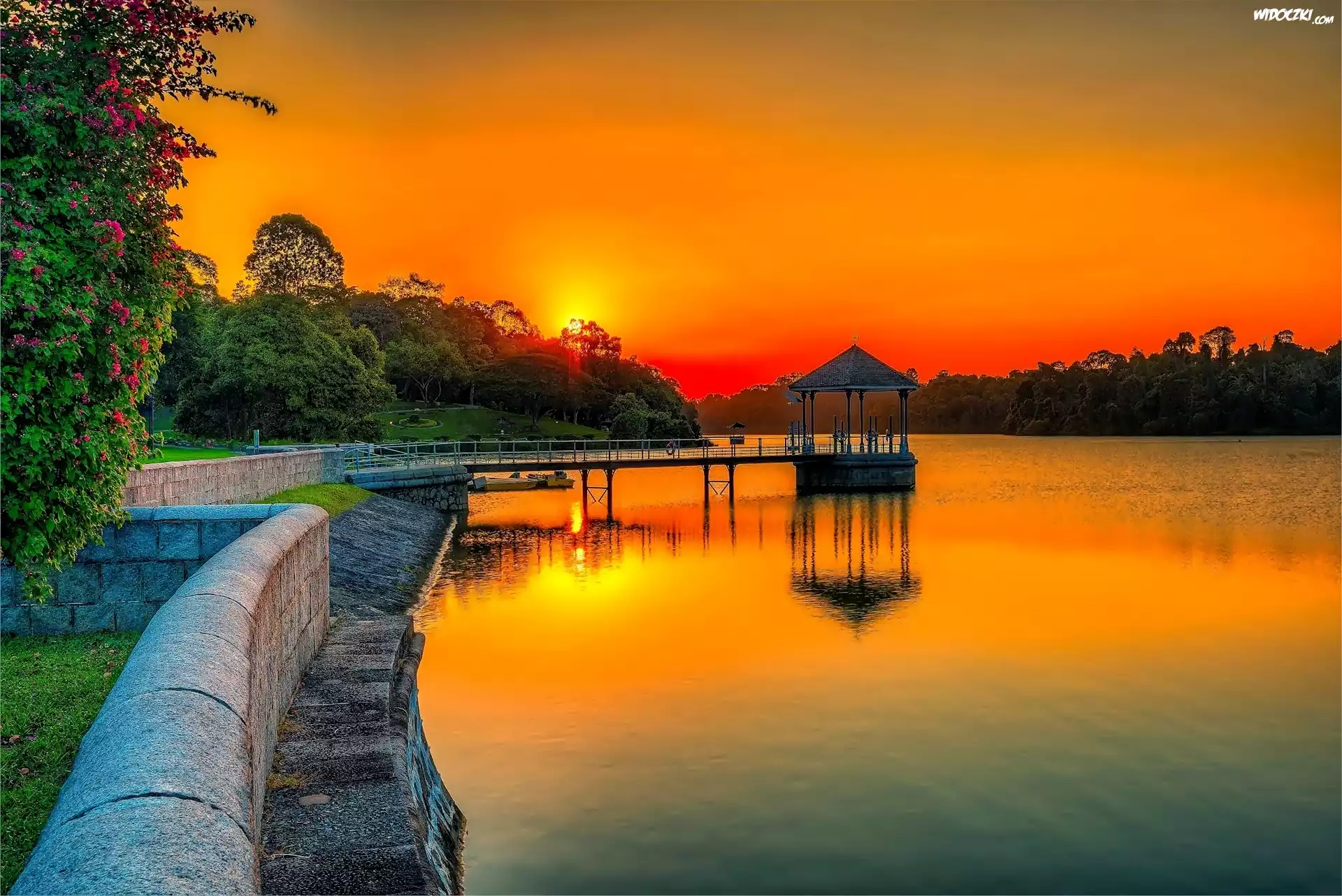 Zdjęcia, Jezioro, Zachód Słońca, Molo