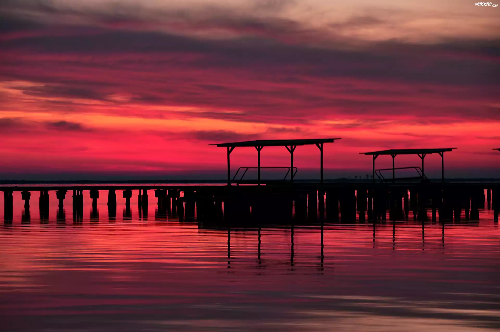 Zdjęcia, Jezioro, Zachód, Słońca, Molo