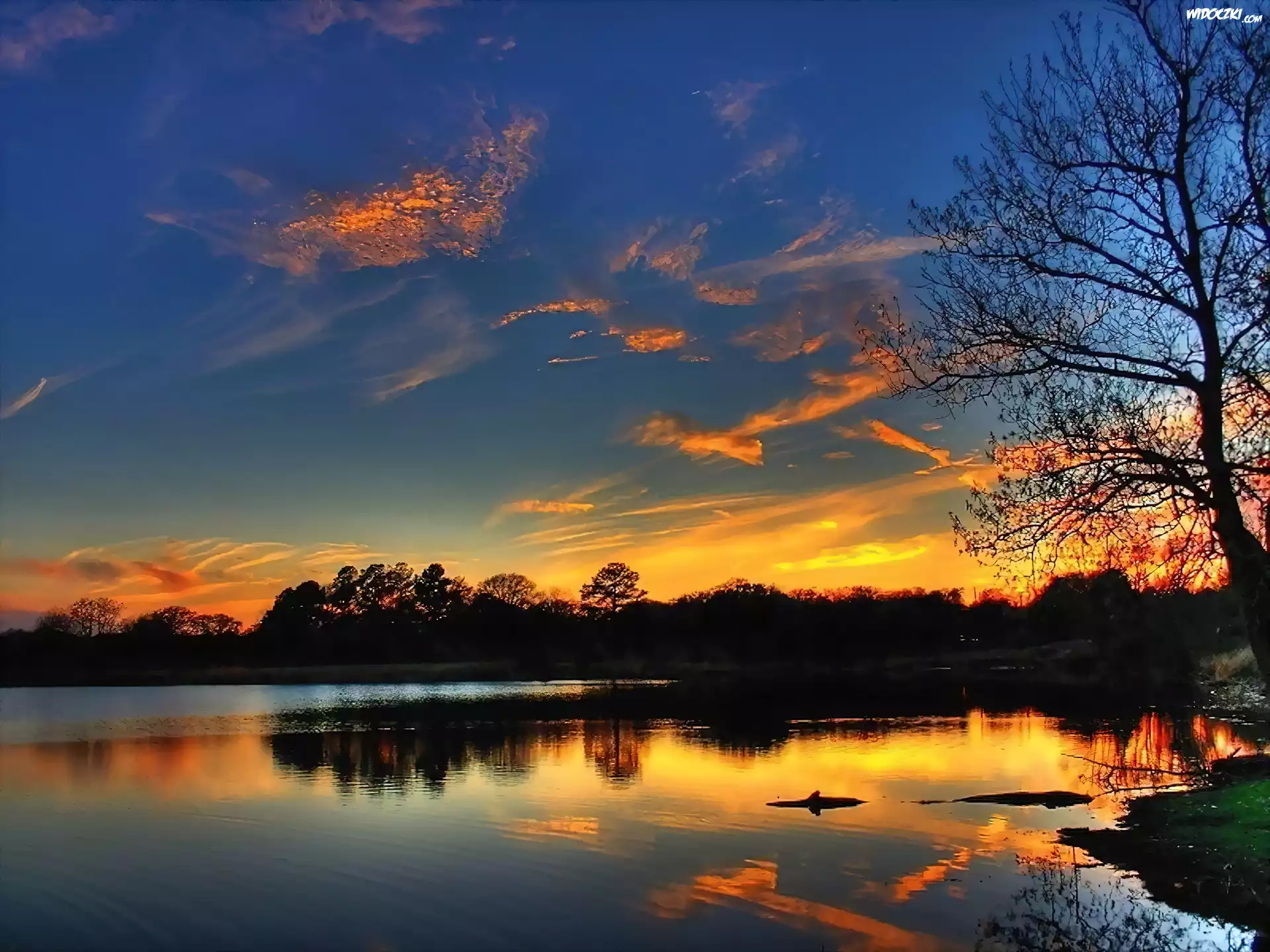 Zdjęcia, Jezioro, Zachód, Słońca, Odbicie
