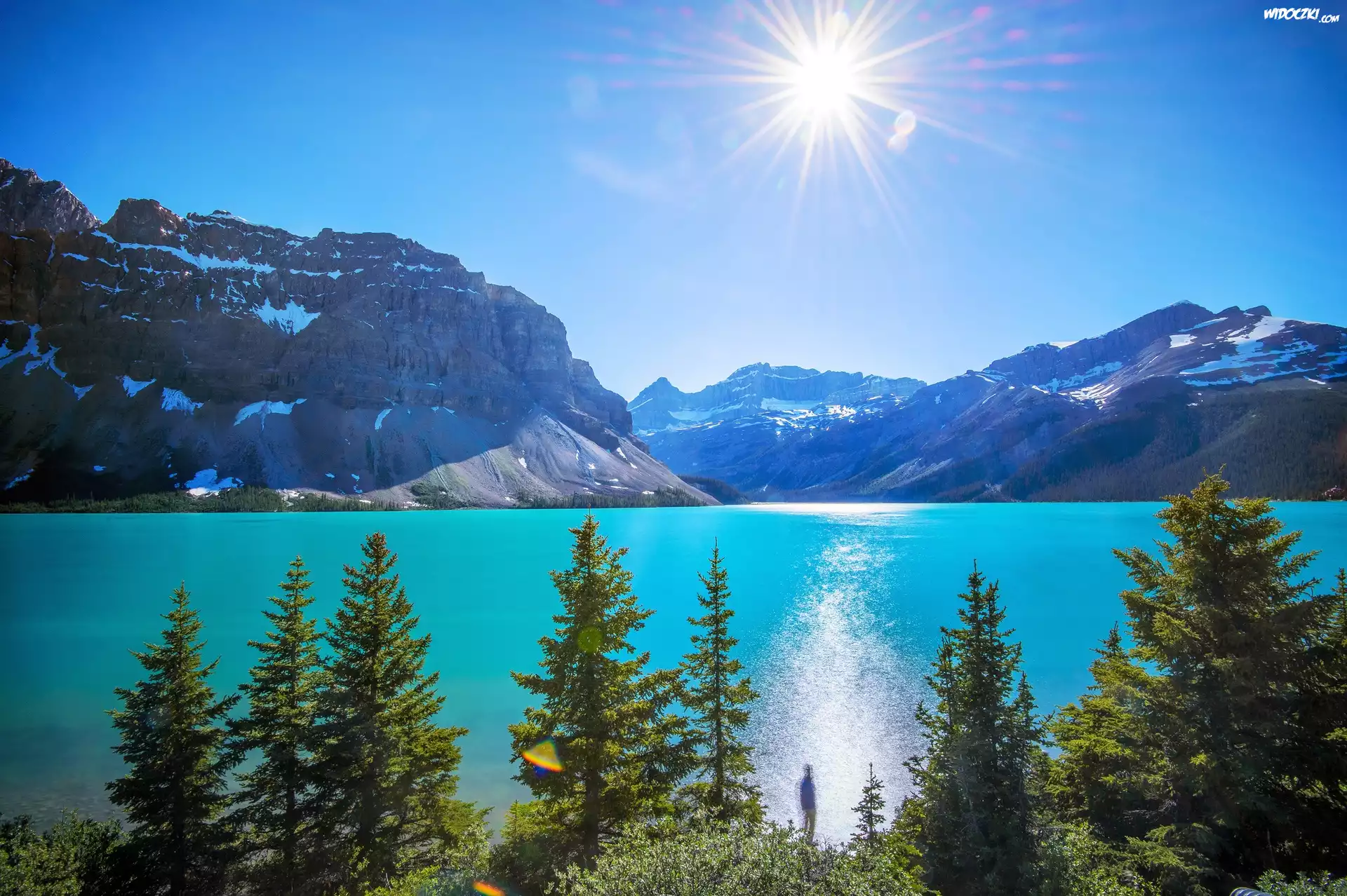Zdjęcia, Jezioro, Góry, Słońce, Drzewa