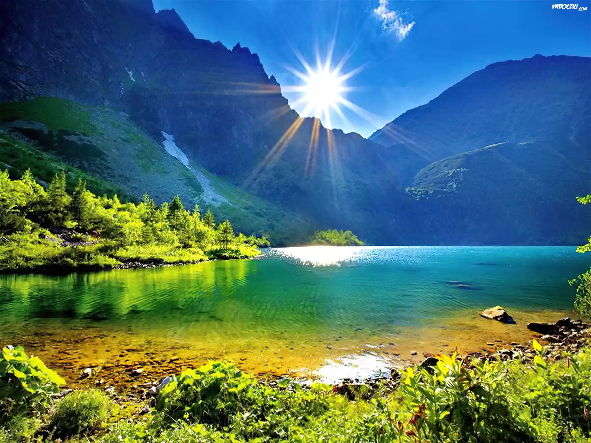 Zdjęcia, Jezioro, Góry, Słońce, Promienie