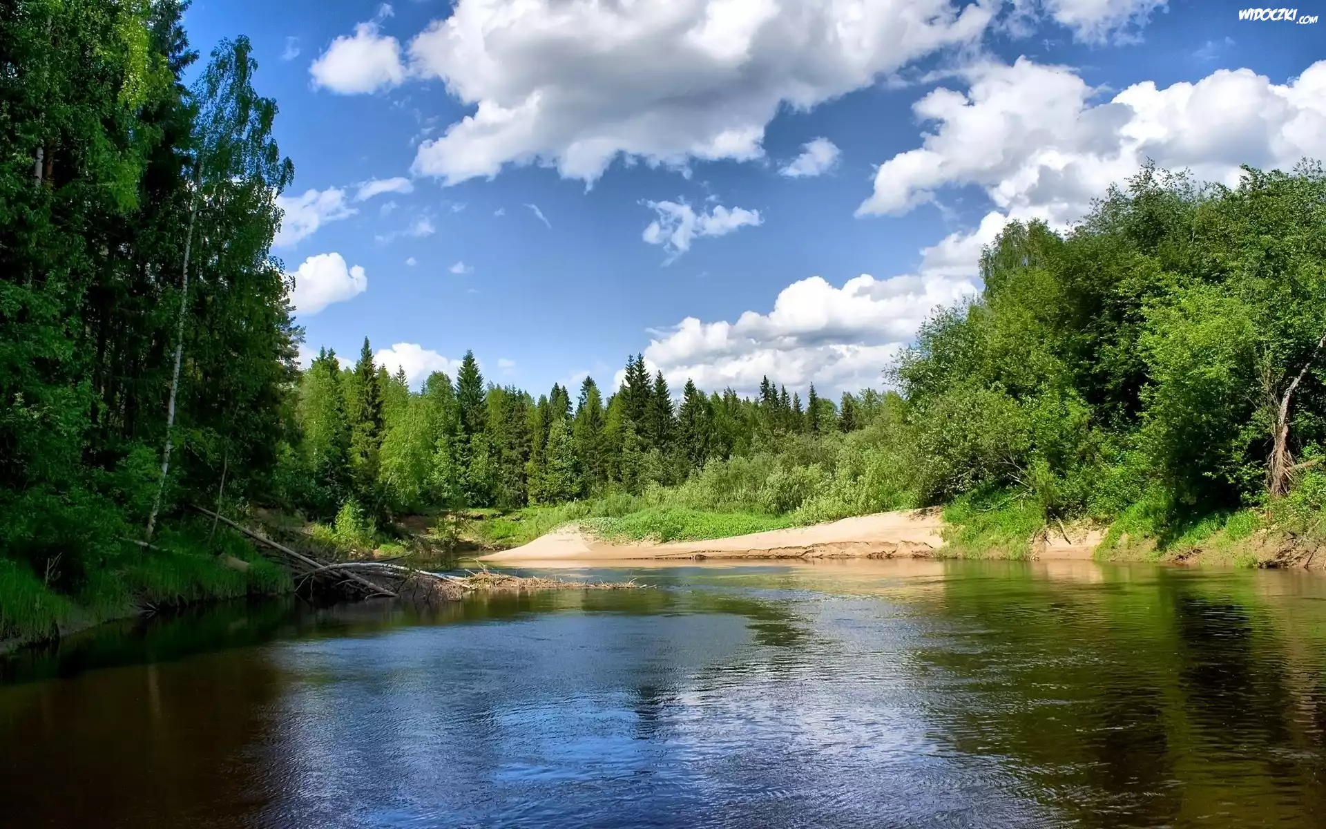 Jezioro, Drzewa, Słoneczna, Pogoda