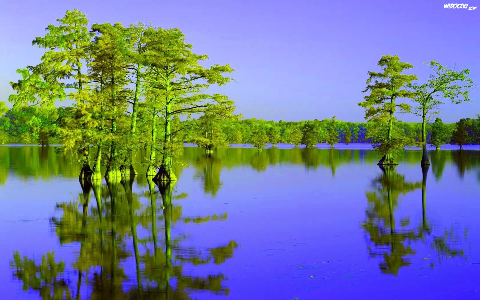 Zdjęcia, Spokojne, Jezioro, Drzewa