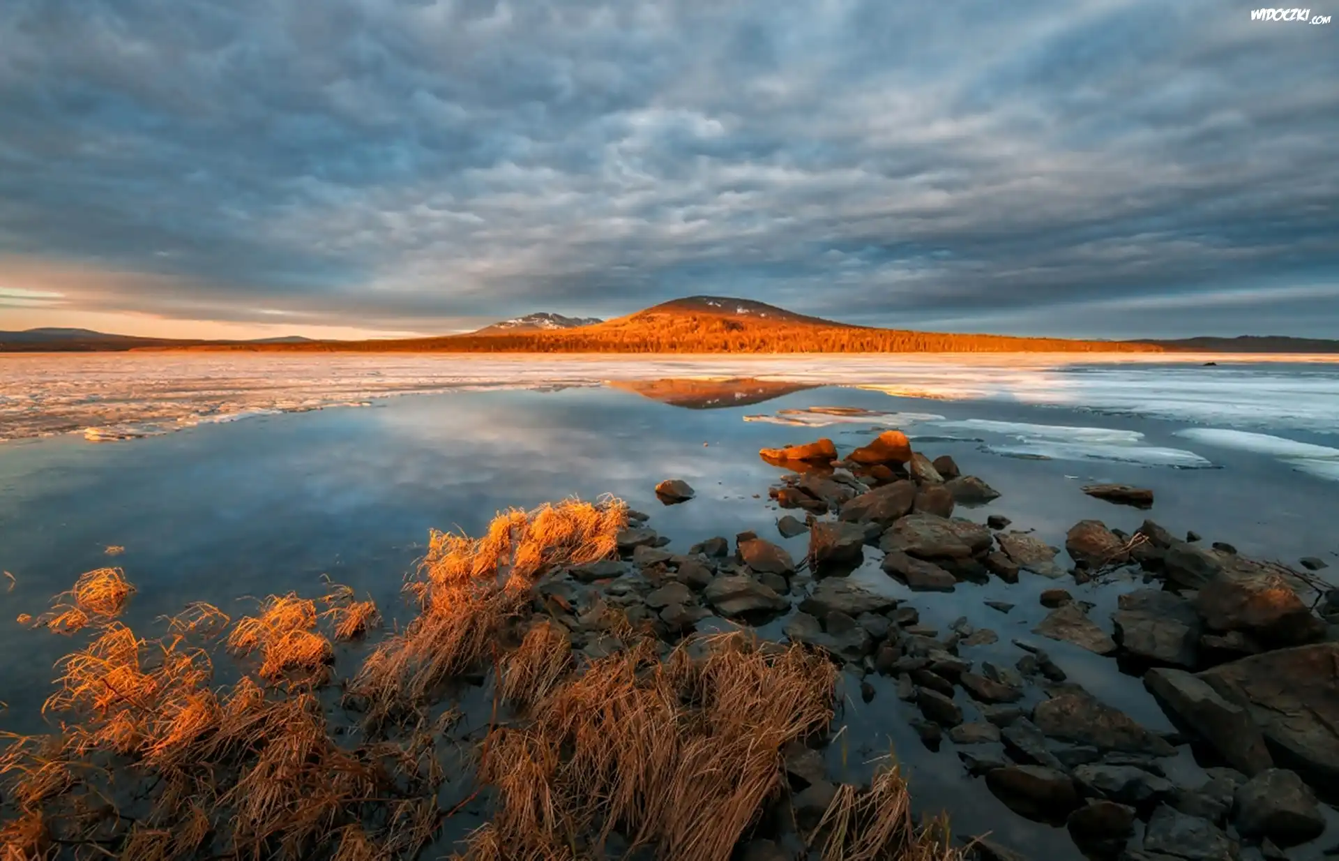 Zdjęcia, Jezioro, Kamienie, Wzgórze, Suche, Trawy