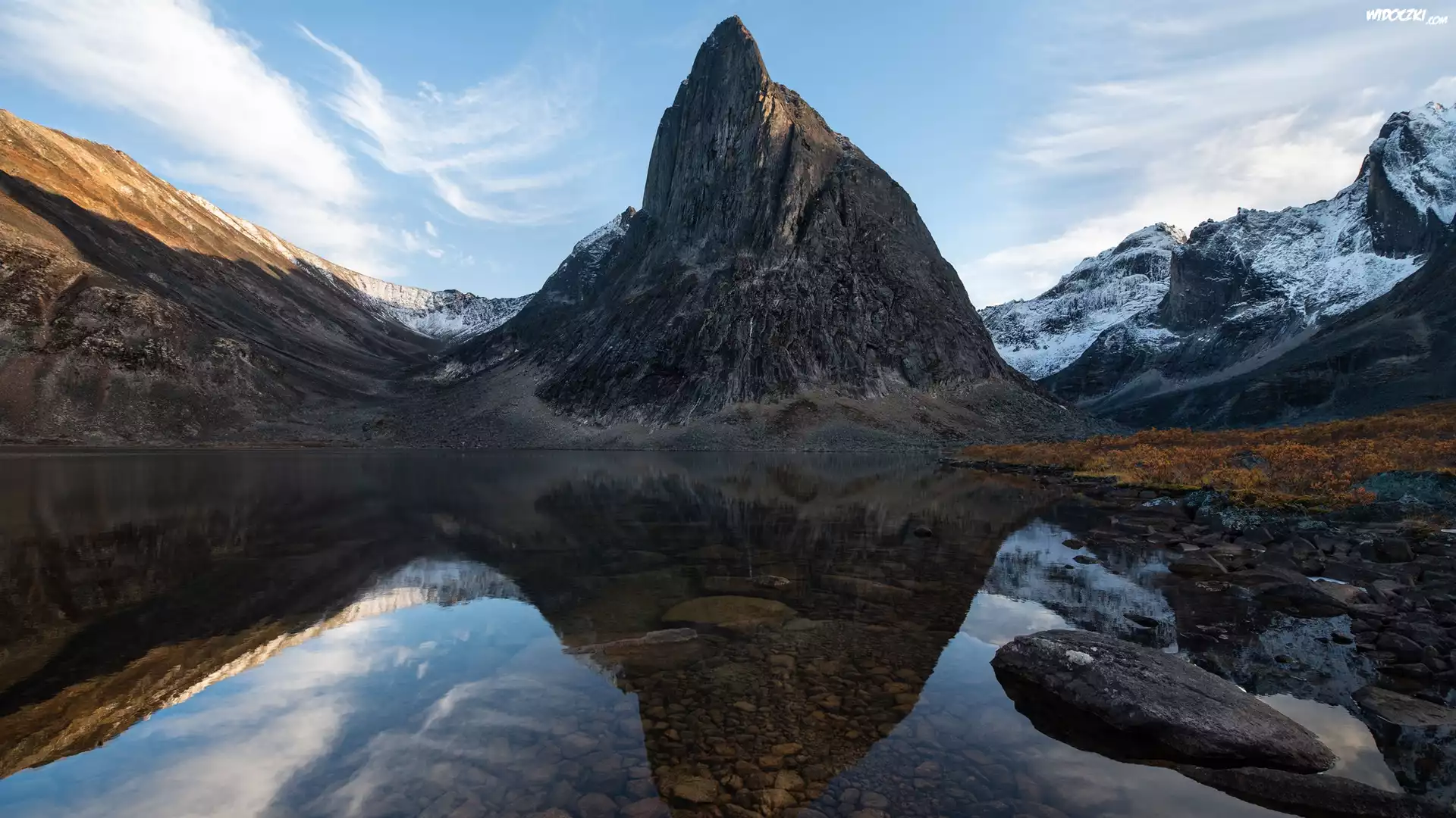 Zdjęcia, Jezioro, Kamienie, Góry, Szczyt, Śnieg