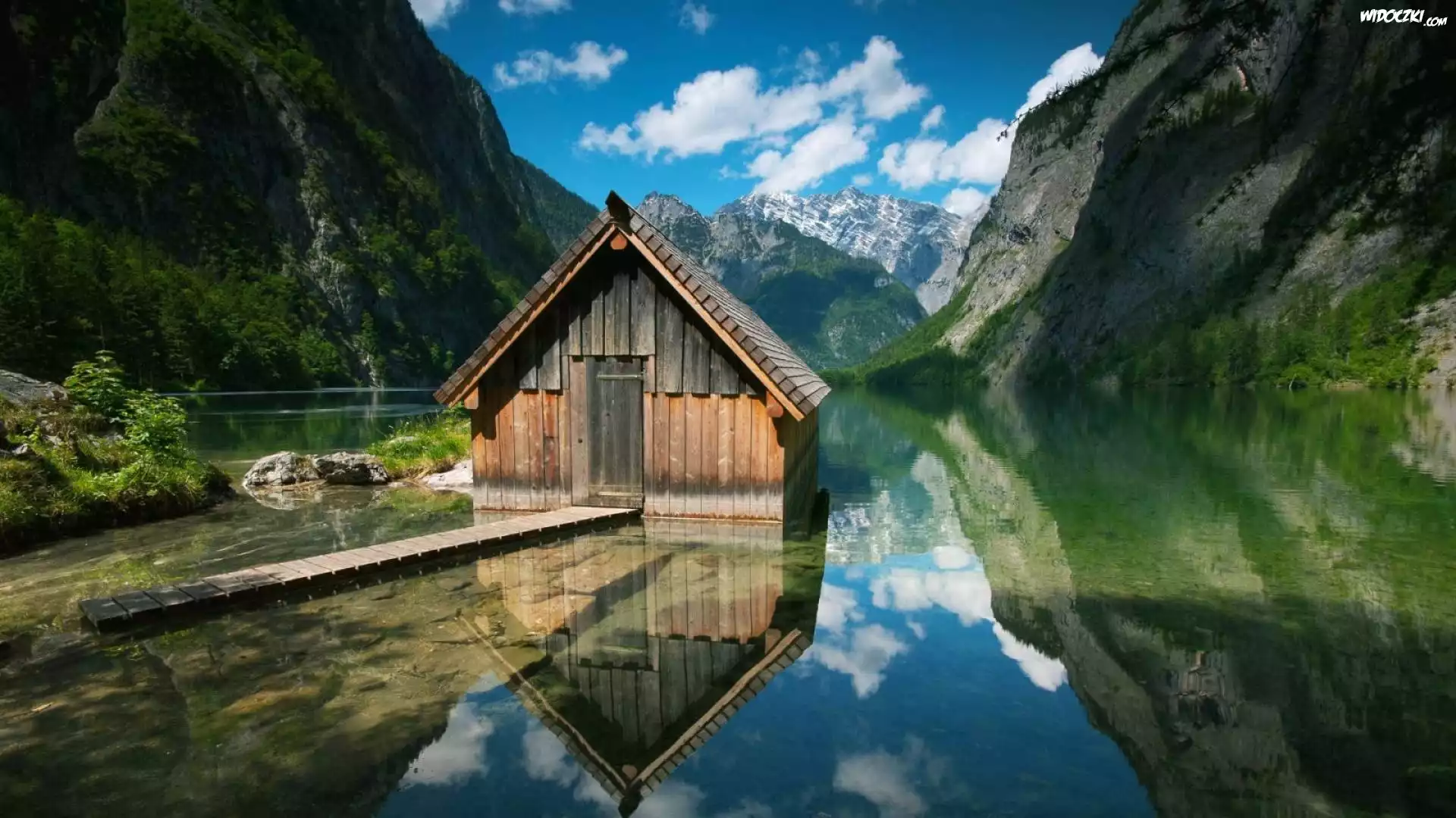 Zdjęcia, Jezioro, Góry, Szopa, Kładka