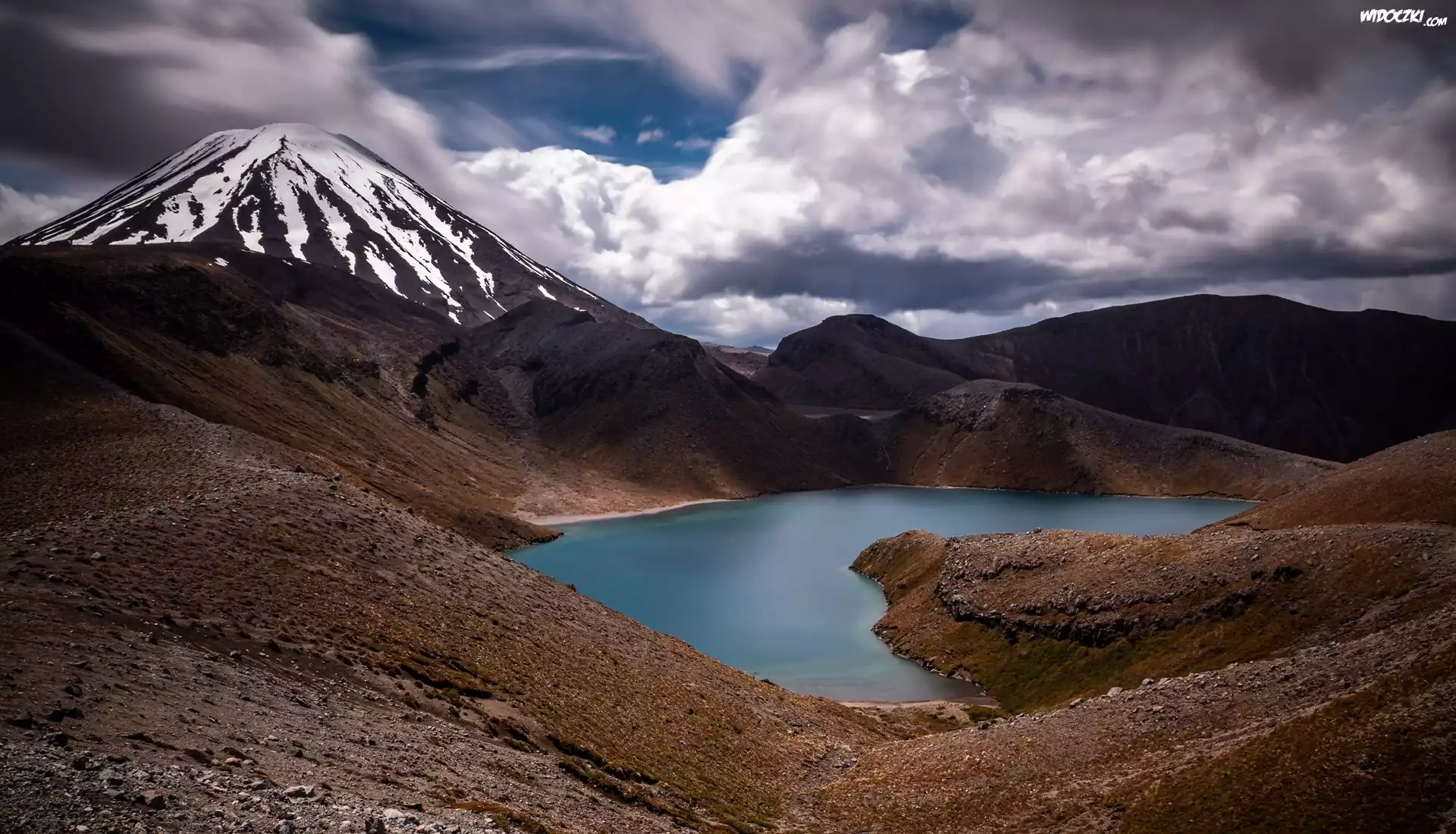 Zdjęcia, Nowa Zelandia, Jezioro, Tama Lake, Park Narodowy Tongariro, Góry, Chmury