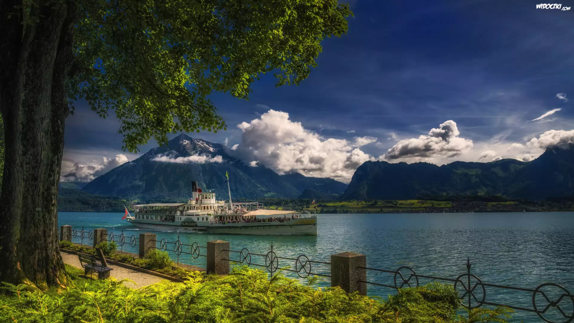 Szwajcaria, Jezioro Thunersee, Statek, Góry