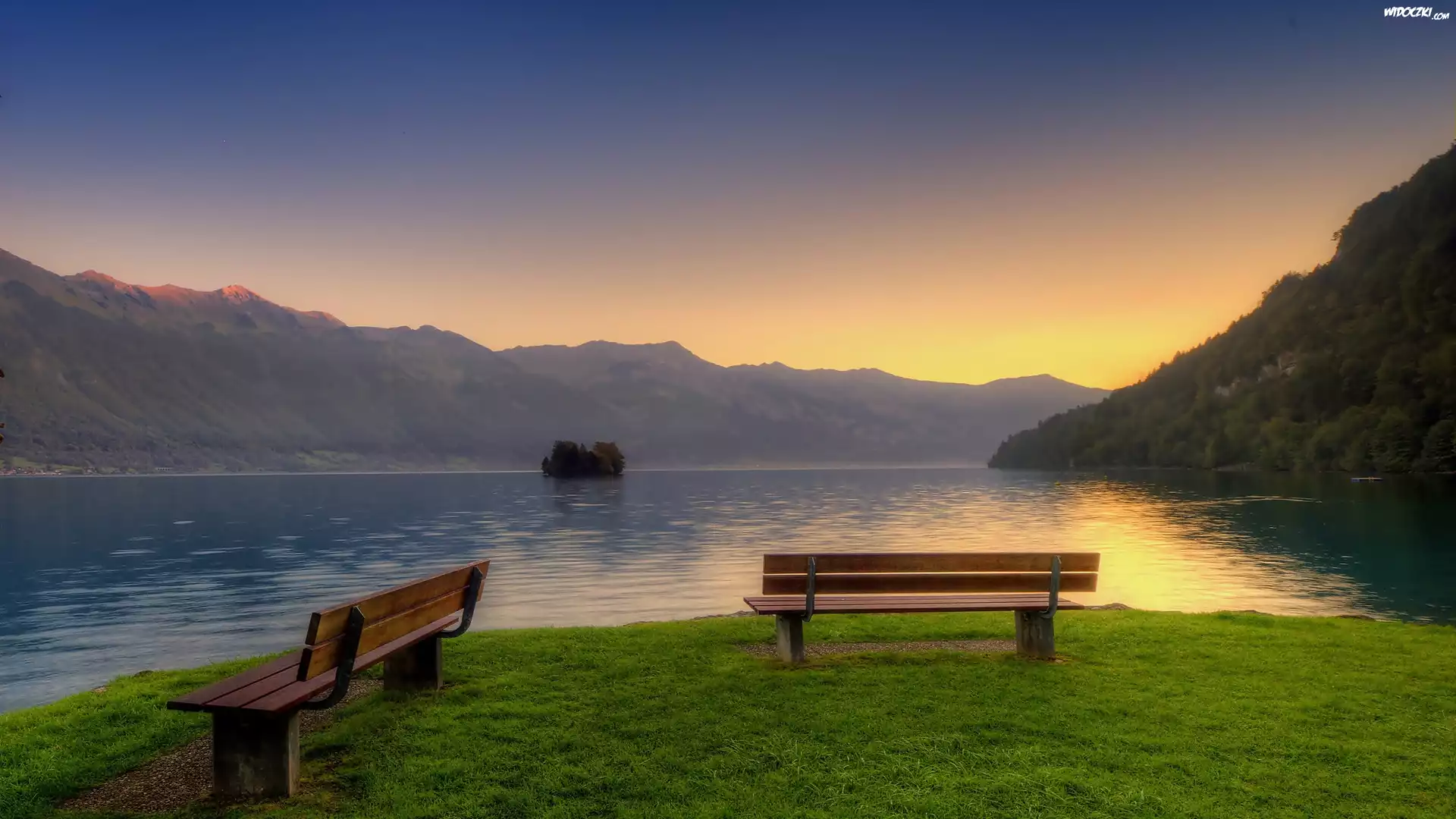 Widok, Jezioro, Ławeczki