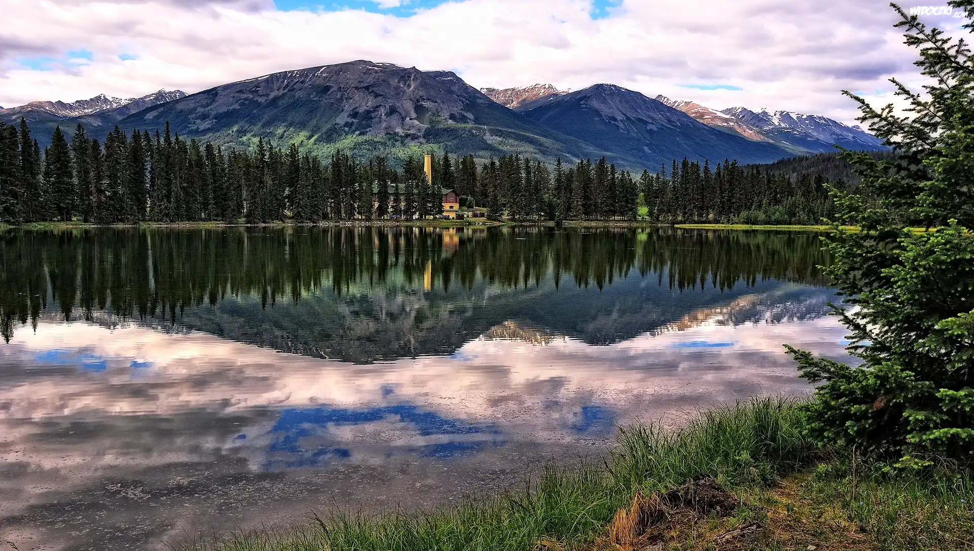 Zdjęcia, Jezioro, Góry, Świerki, Odbicie