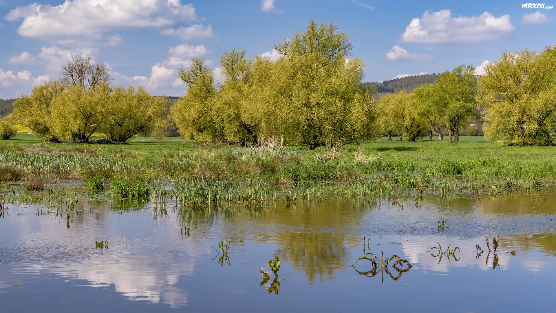 Zdjęcia, Wiosna, Zielone, Drzewa, Jezioro