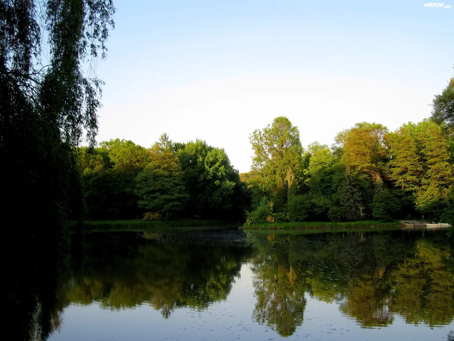 Zdj臋cia, Wiosna, Jezioro, Drzewa
