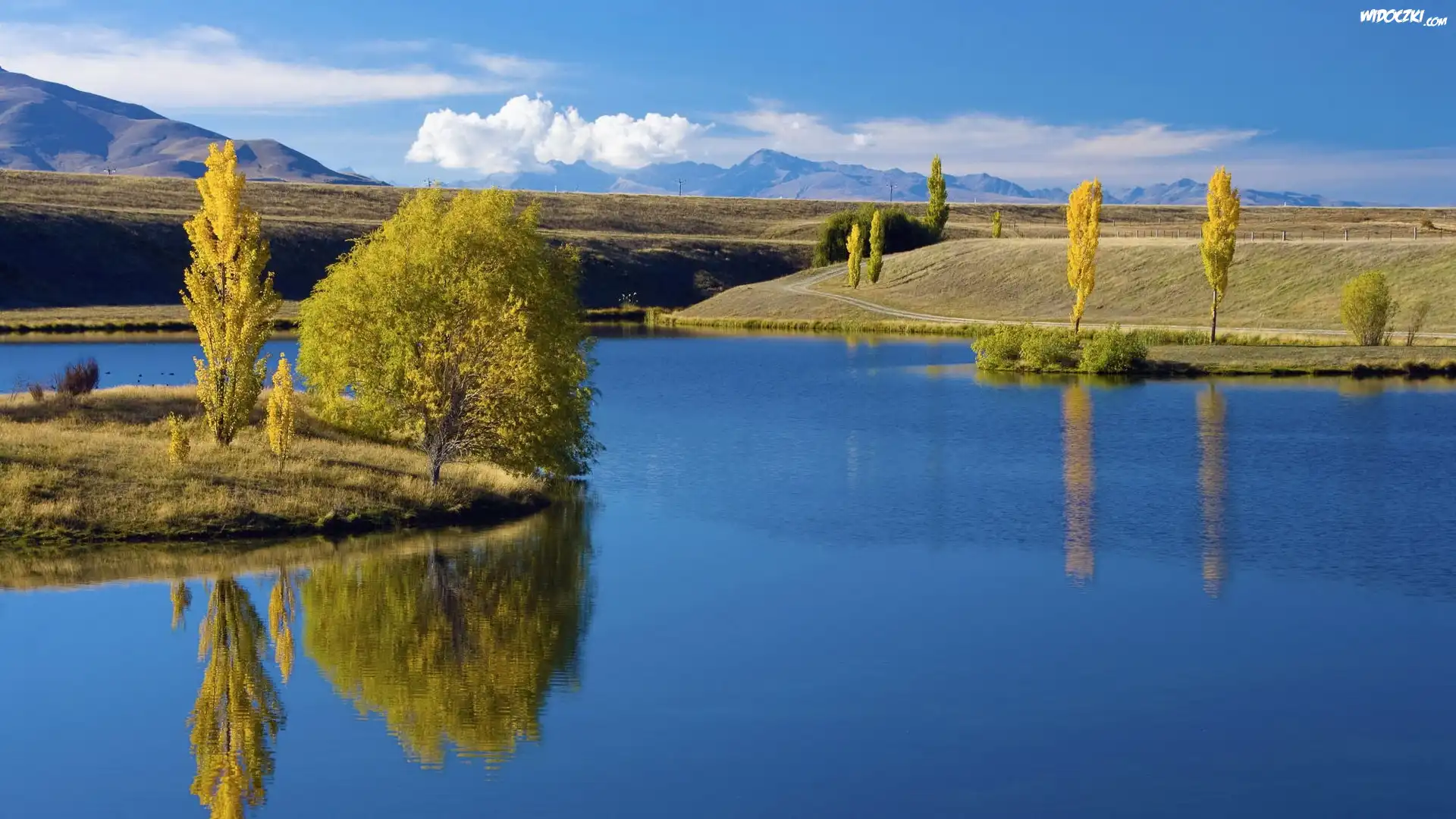 Zdjęcia, Jezioro, Niebieska, Woda, Drzewa