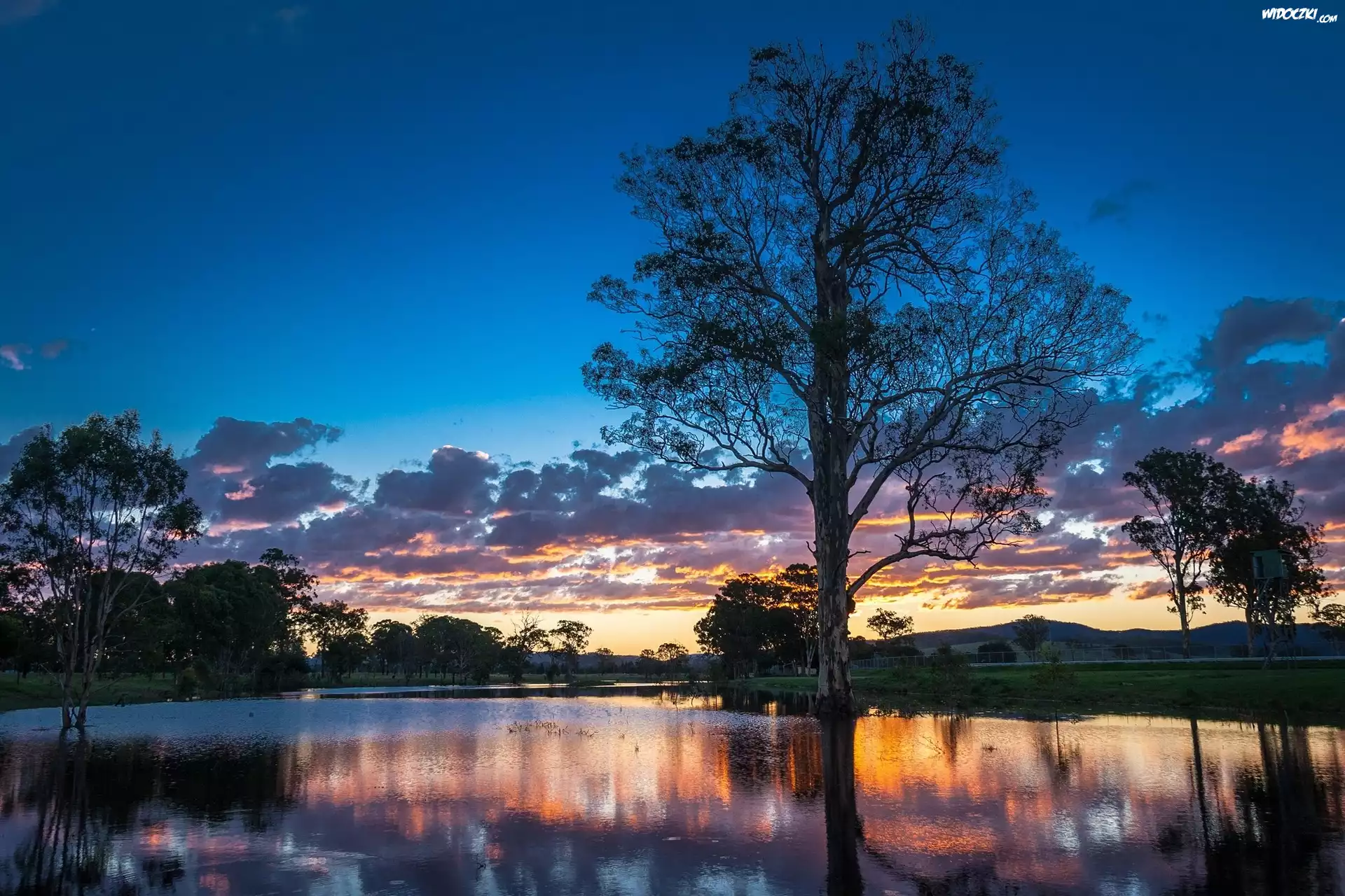 Zdjęcia, Jezioro, Drzewa, Wschód, Słońca