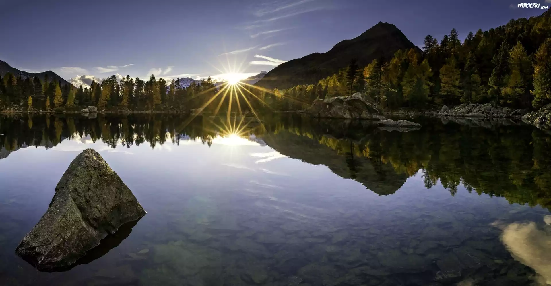 Zdjęcia, Jezioro, Góry, Wschód słońca