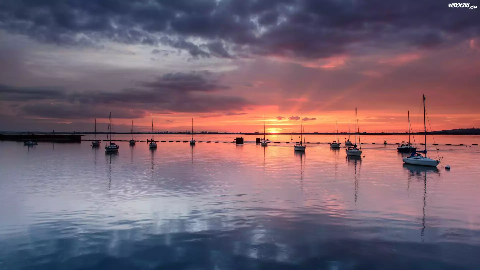 Zdjęcia, Jezioro, Łodzie, Wschód Słońca