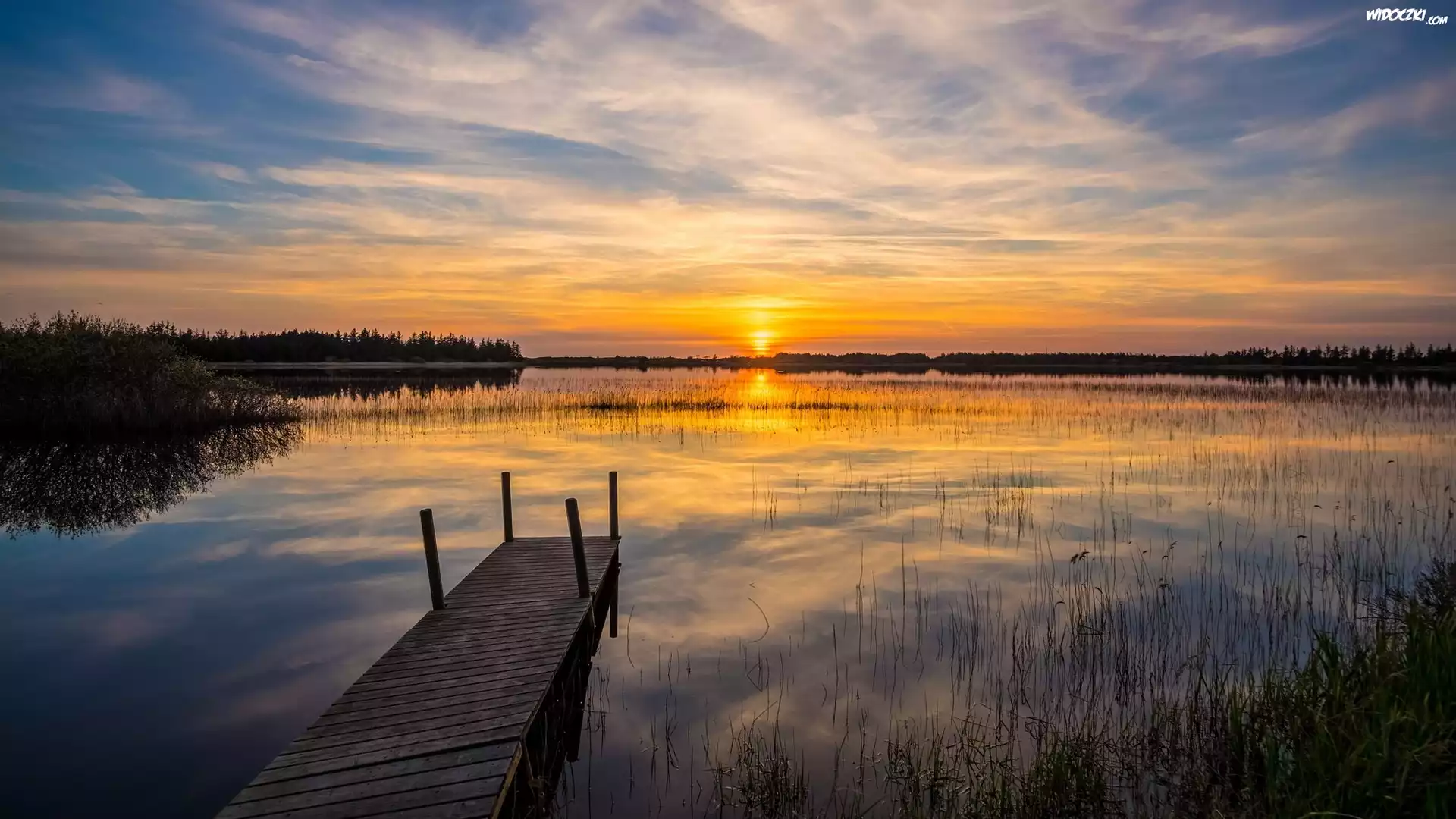 Jezioro, Pomost, Wschód słońca