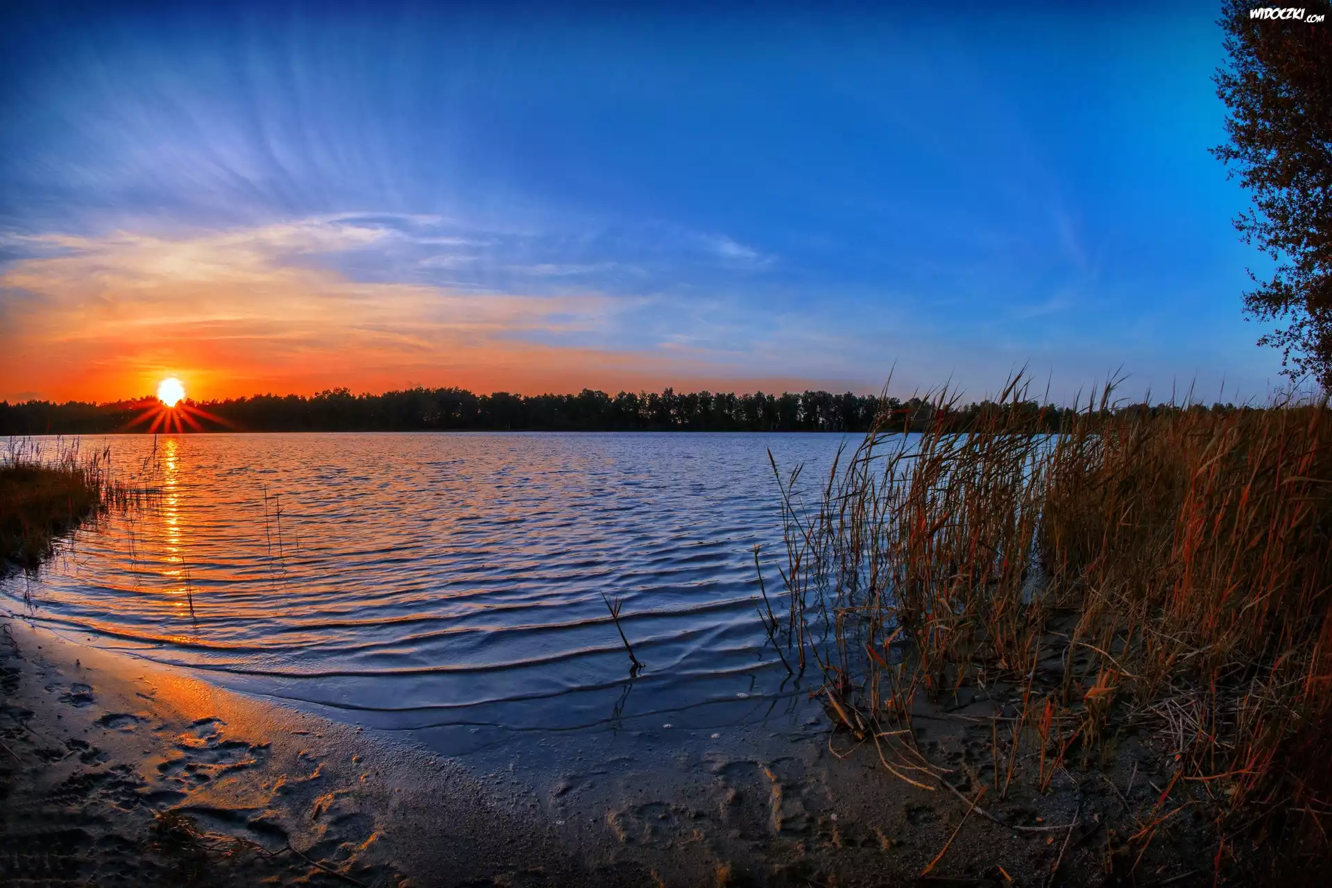 Zdjęcia, Jezioro, Szuwary, Wschód, Słońca