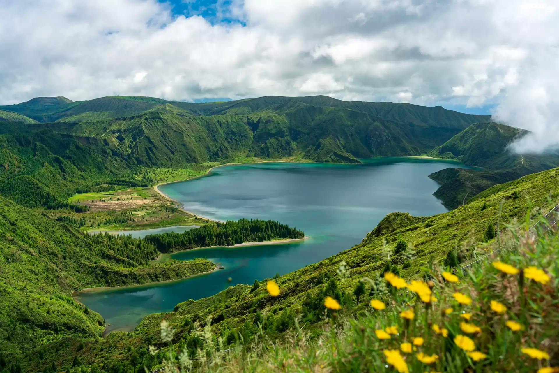 Zdjęcia, Jezioro, Lagoa de Fodo, Góry, Azory, Sao Miguel, Wyspa, Portugalia