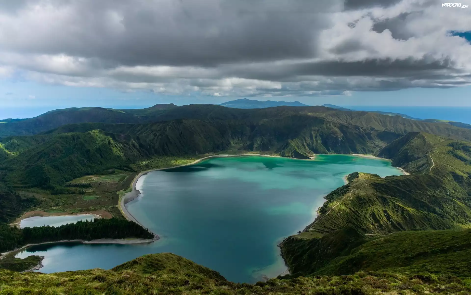 Zdjęcia, Jezioro, Góry, Zachmurzone, Niebo