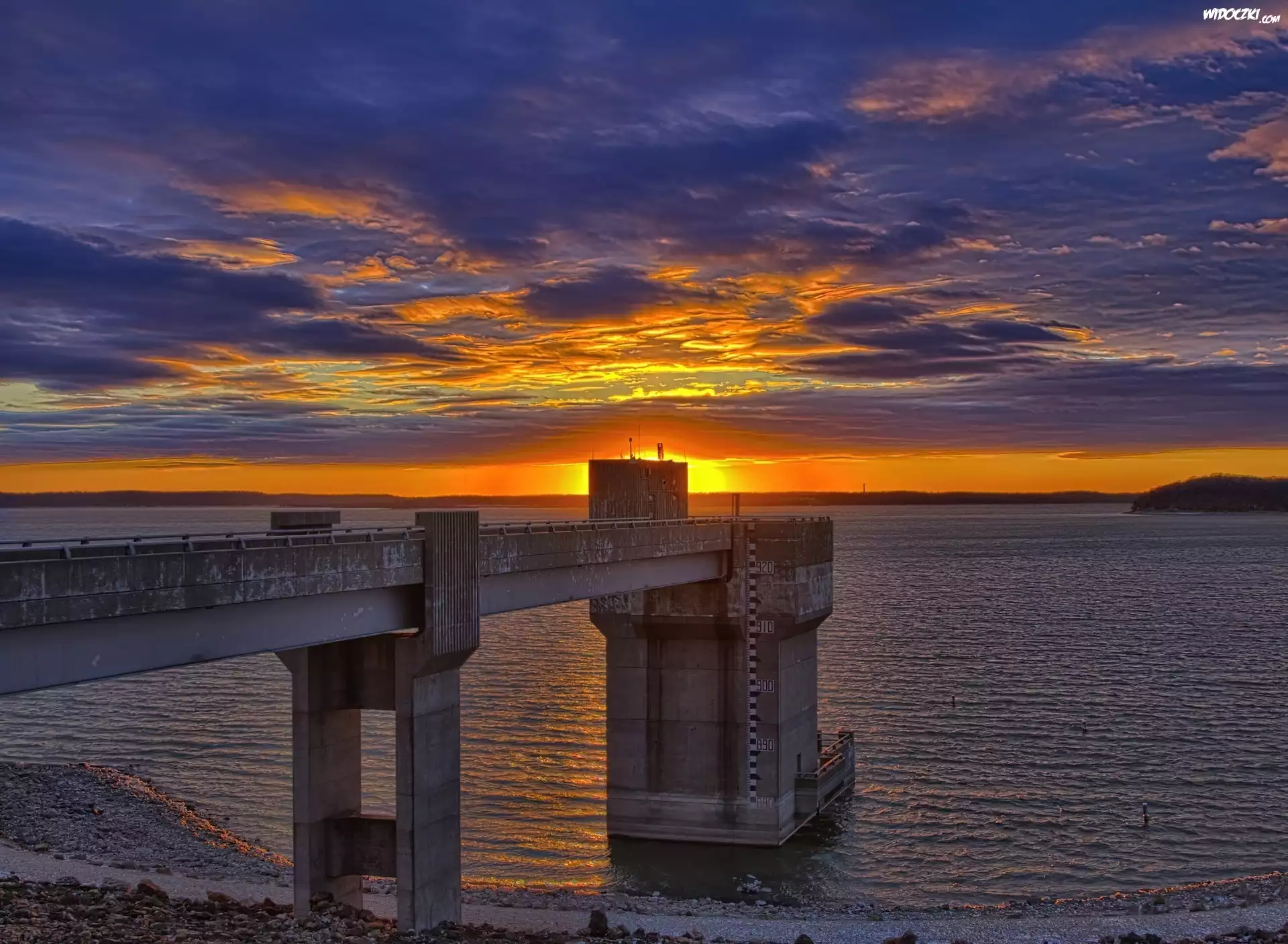 Zdjęcia, Jezioro, Chmury, Zachód, Słońca
