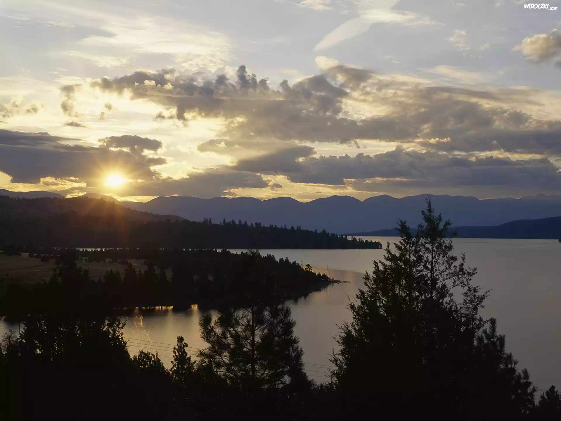 Zdjęcia, Jezioro, Chmury, Zachód Słońca