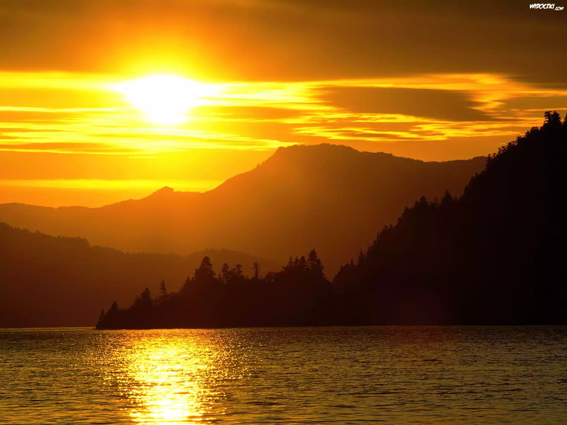 Zdjęcia, Jezioro, Góry, Zachód, Słońca