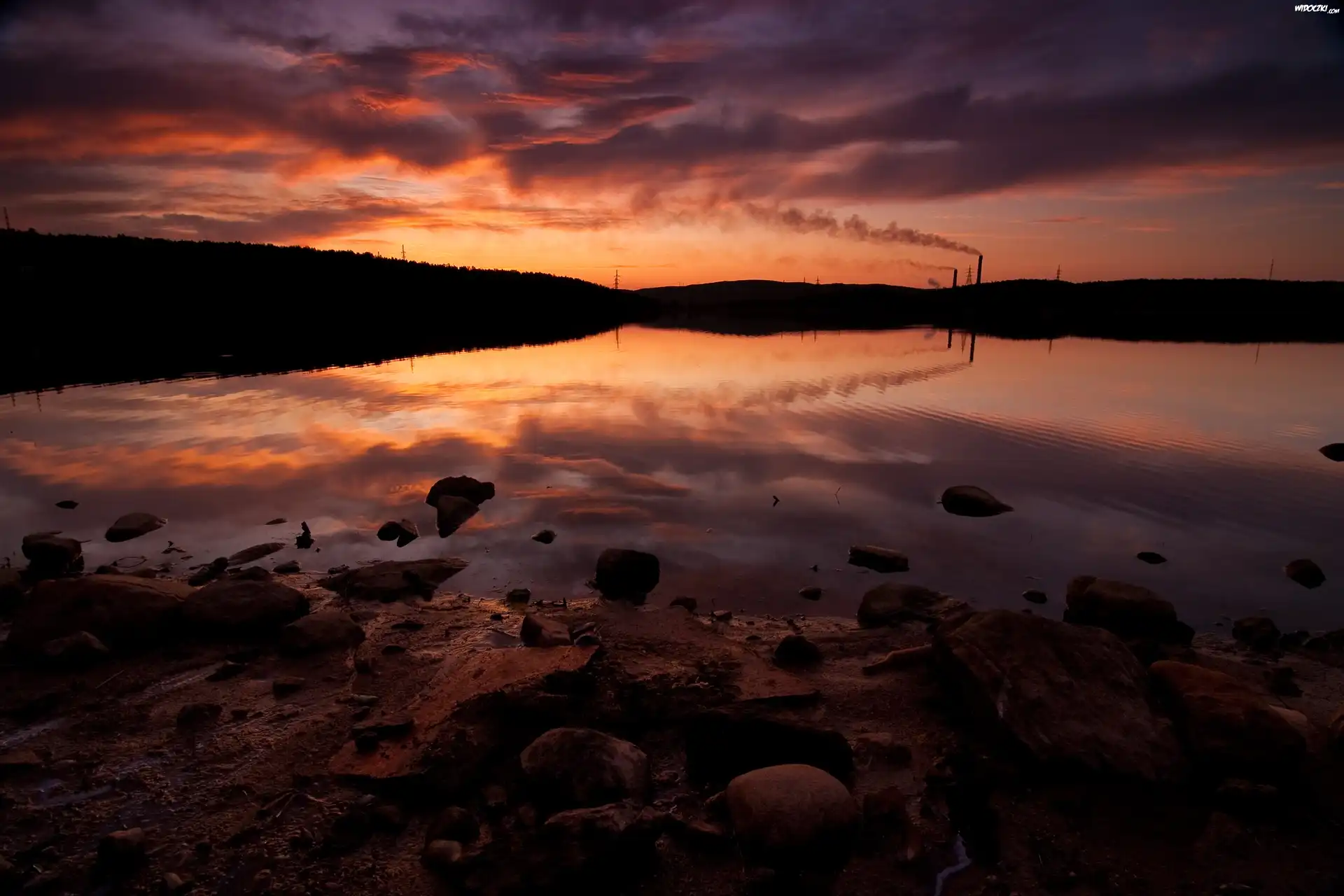 Zdjęcia, Jezioro, Kamienie, Zachód Słońca