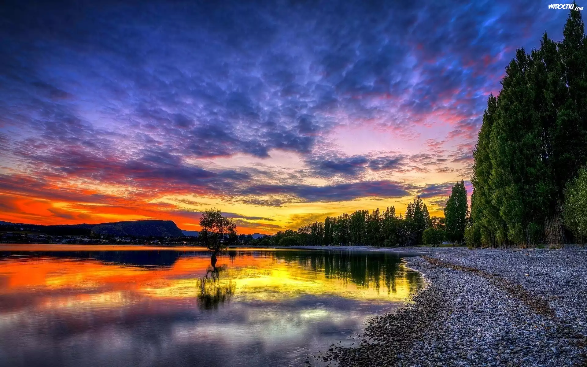 Zdjęcia, Jezioro, Las, Zachód, Słońca