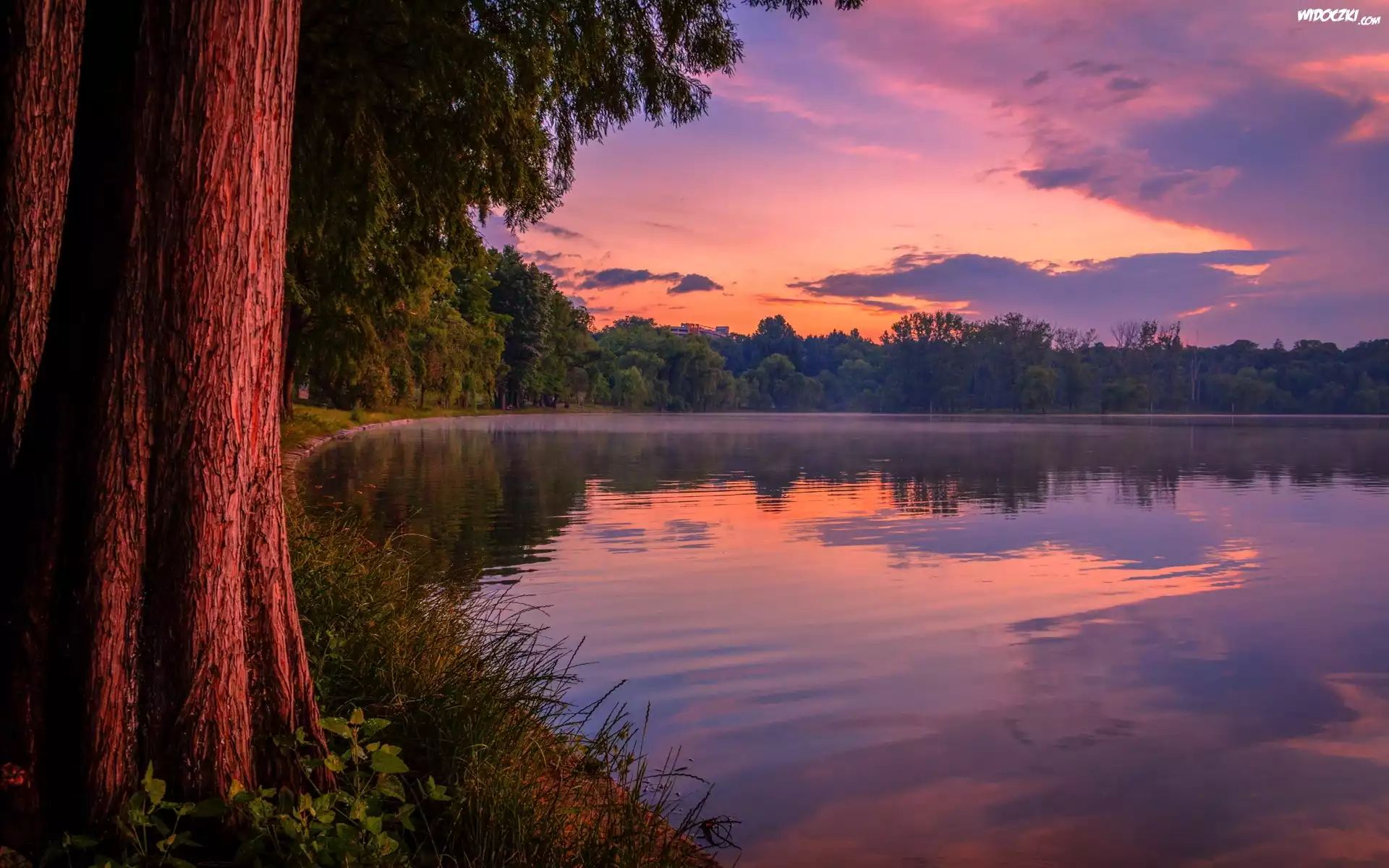 Zdjęcia, Jezioro, Las, Zachód, Słońca