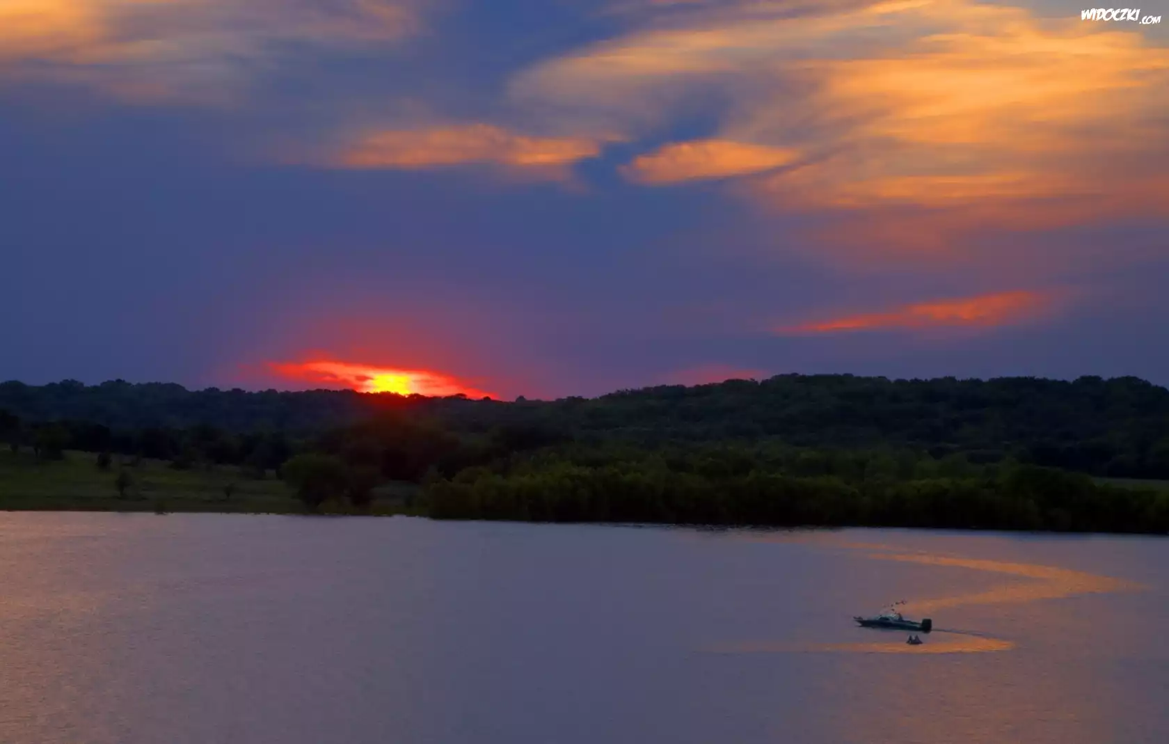Zdjęcia, Jezioro, Lasy, Zachód Słońca