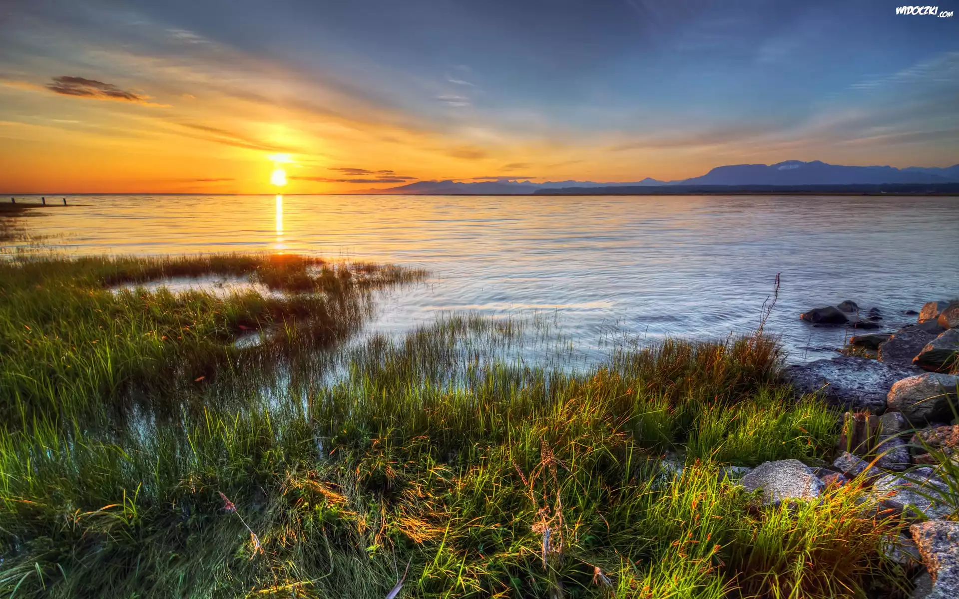 Zdjęcia, Jezioro, Szuwary, Zachód, Słońca