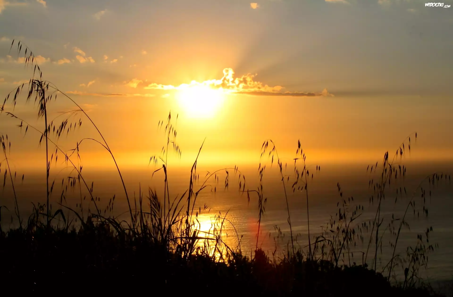 Zdjęcia, Jezioro, Źdźbła, Trawy, Zachód, Słońca