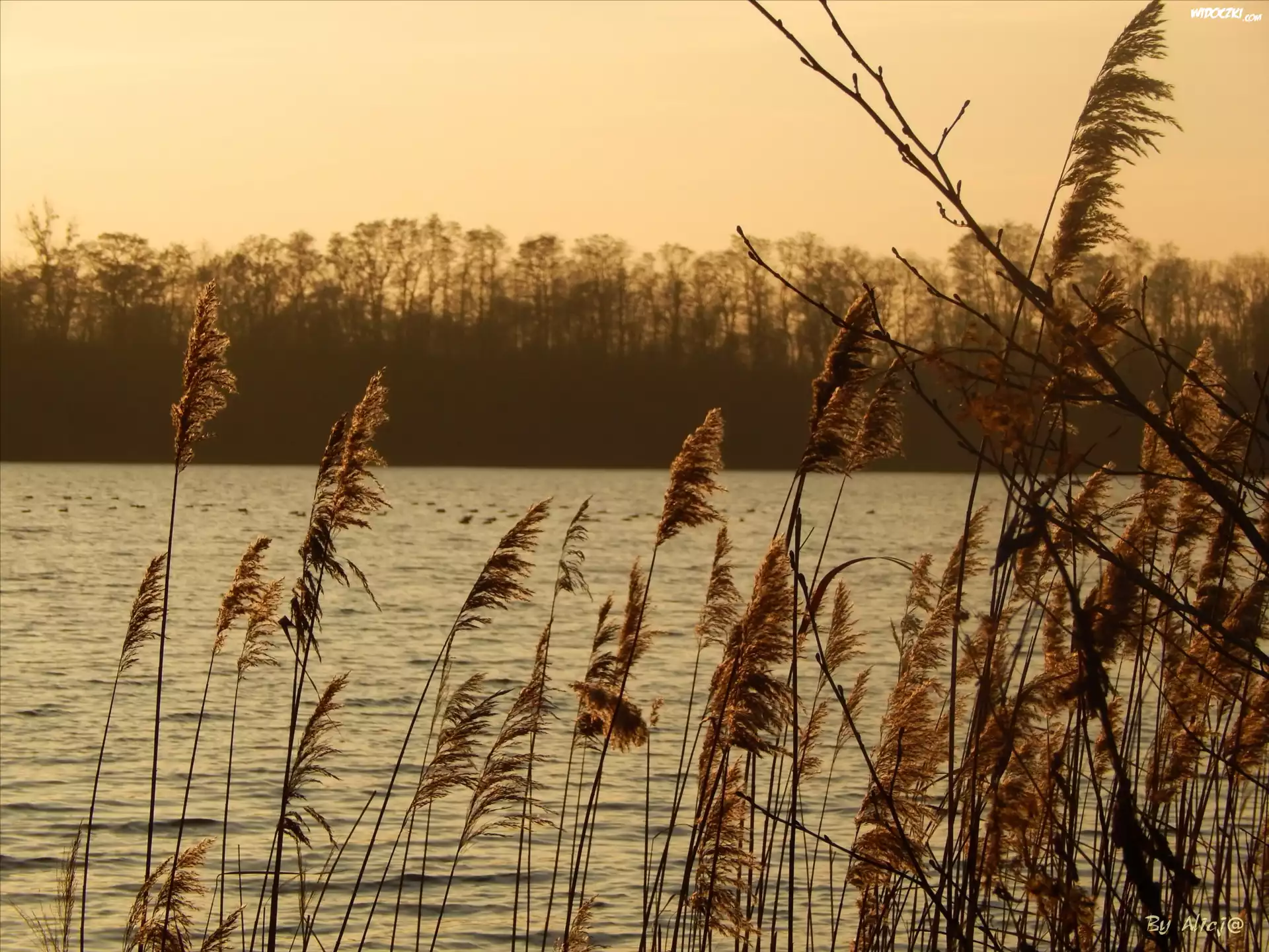 Zdjęcia, Jezioro, Trzcina, Zachód, Słońca
