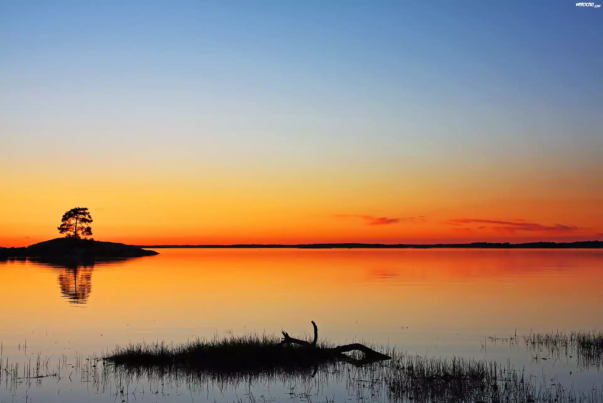 Zdjęcia, Jezioro, Wysepka, Zachód Słońca