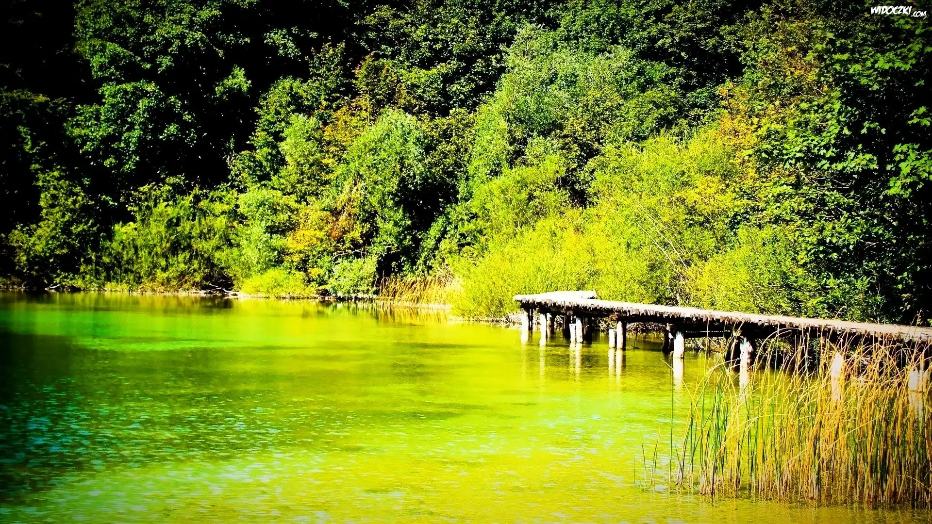 Jezioro, Pomost, Zalesiony, Brzeg