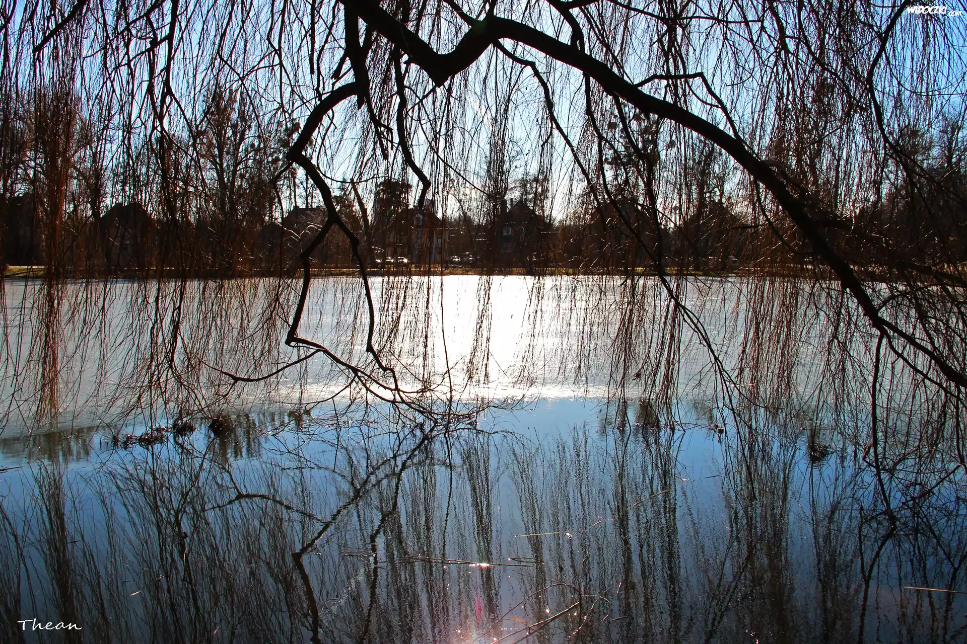 Zdjęcia, Zamarznięte, Jezioro, Wierzba